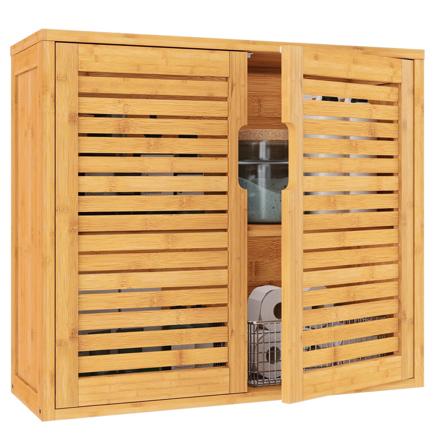 VIAGDO Wall Cabinet Bathroom Storage Cabinet Wall Mounted with Adjustable Shelves Inside, Double Door Medicine Cabinet, Utility Cabinet Organizer Over Toilet, Bamboo, 23.2''Lx8.3''Wx20.1''H