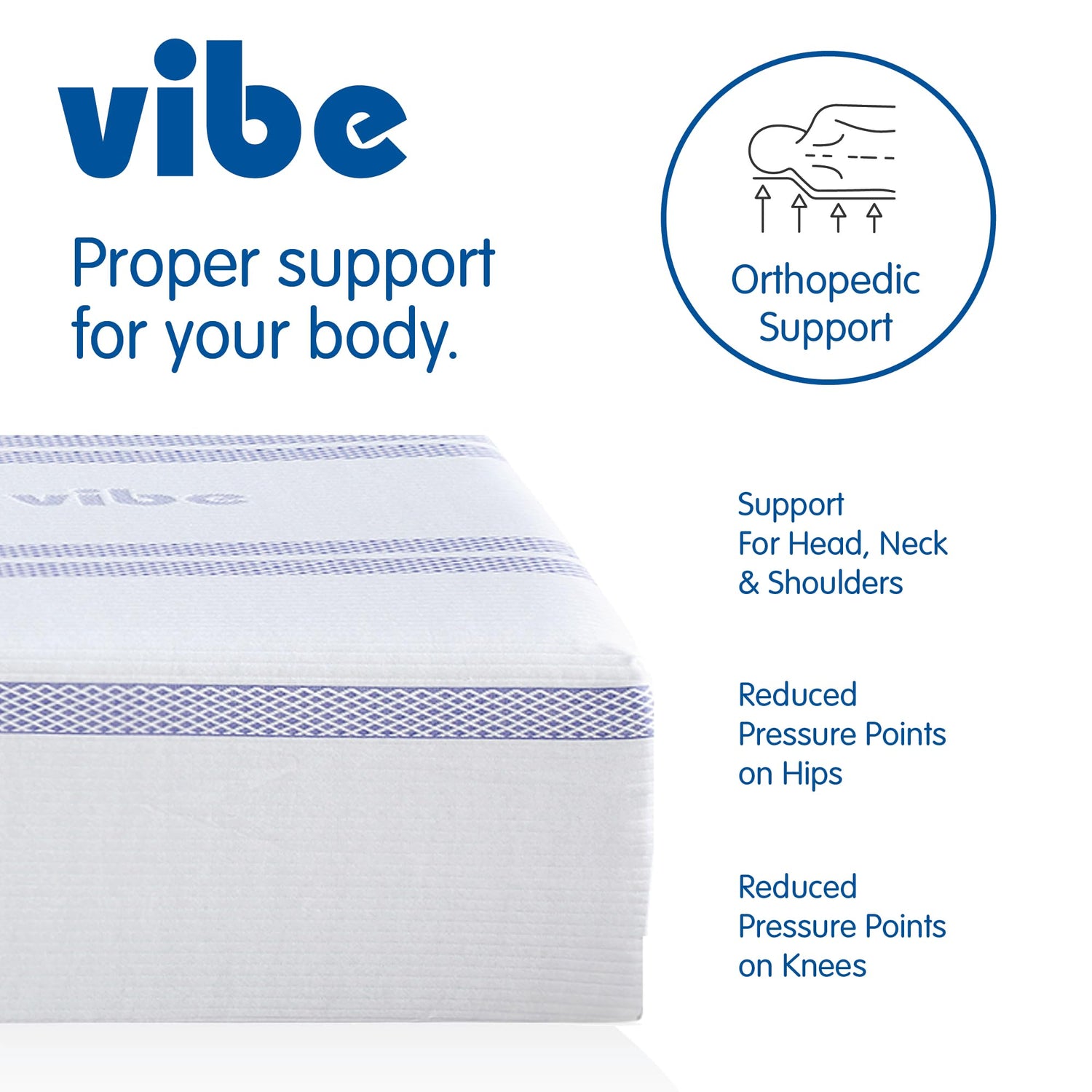 Details: Good mornings, good feelings, good times, good Vibe. The Vibe Gel Memory Foam 12-Inch Mattress combines two leading sleep technologies at an incredible value. Gel-infused memory foam keeps you cool during sleep and body-contouring memory foam reduces pressure points and properly aligns the spine. Gel draws heat away from the body and creates a cooler sleep surface and aids in preventing excessive tossing and turning so you can get a more restful night's sleep. The Vibe mattress is comprised of gel memory foam which supports every part of the body evenly and individually. Gel memory foam automatically adjusts to your body’s weight and temperature. In addition to the slow, conforming response, this cooling mattress offers complete, luxurious, and stress-free support. This can reduce pressure points and allow the spine to stay properly aligned in a neutral position. When you move in bed, memory foam gently 'fills in' and reshapes itself to your new sleeping posture and minimizes motion disturbance and transfers between partners. The latest technology in gel foam beds, this bed mattress is conforming, comfortable, and comes complete. A combination of 2 inches of gel memory foam with 3 inches of transitional comfort foam provides the ultimate in breathability and heat displacement while 7 inches of high-density base foam beneath offers maximum support, pressure point relief, and proper spinal alignment. All this surrounded by a luxurious stretch knit cover, you may never want to leave your bed. The feel of this classic bed in a box gel mattress is slightly plusher than a traditional firm mattress. This 12-inch memory foam mattress is a low-cost solution to more expensive branded memory foam beds and is a smart alternative without sacrificing quality, comfort, or support. Vibe mattresses in a box are made using premium materials and skilled craftsmanship and are backed up by a 10-Year Manufacturer's Limited Warranty.
