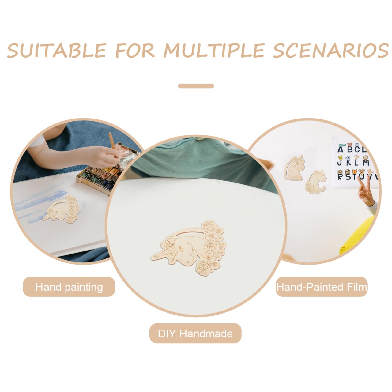 - Wood Unicorn to Paint, Mini Unicorn Head Unfinished Wood Slice Unicorn Cutouts With Hole Diy Wood Animal Crafts Wooden Blank Kids Painting Toy For Keychain. The unique and adorable unicorn shaped designs of these wooden cutouts allow for creative freedom and expression