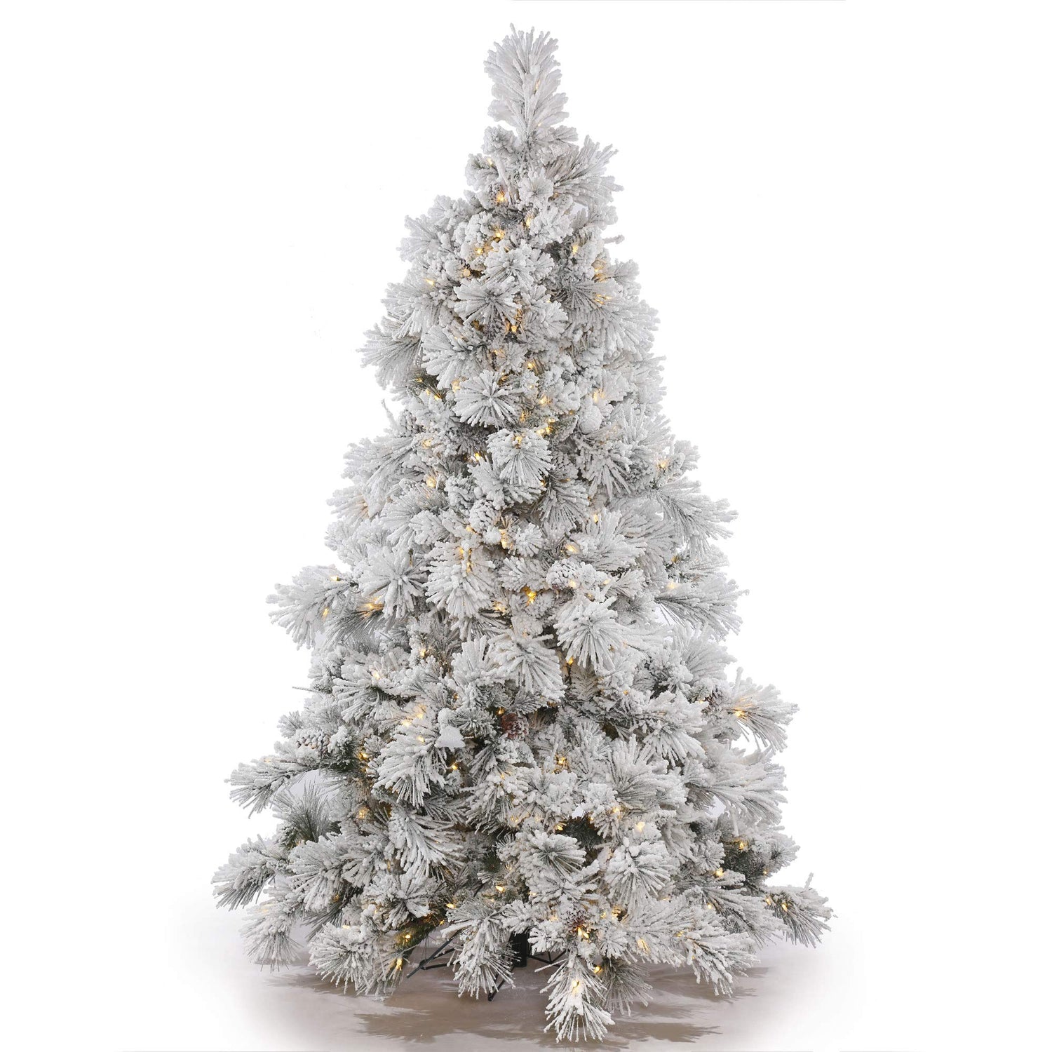 - Prelit tree: Brighten any space with 1900 Pure White Italian LED lights on this prelit flocked Christmas tree. Prelit for your convenience, leave as is or add your favorite decorations.