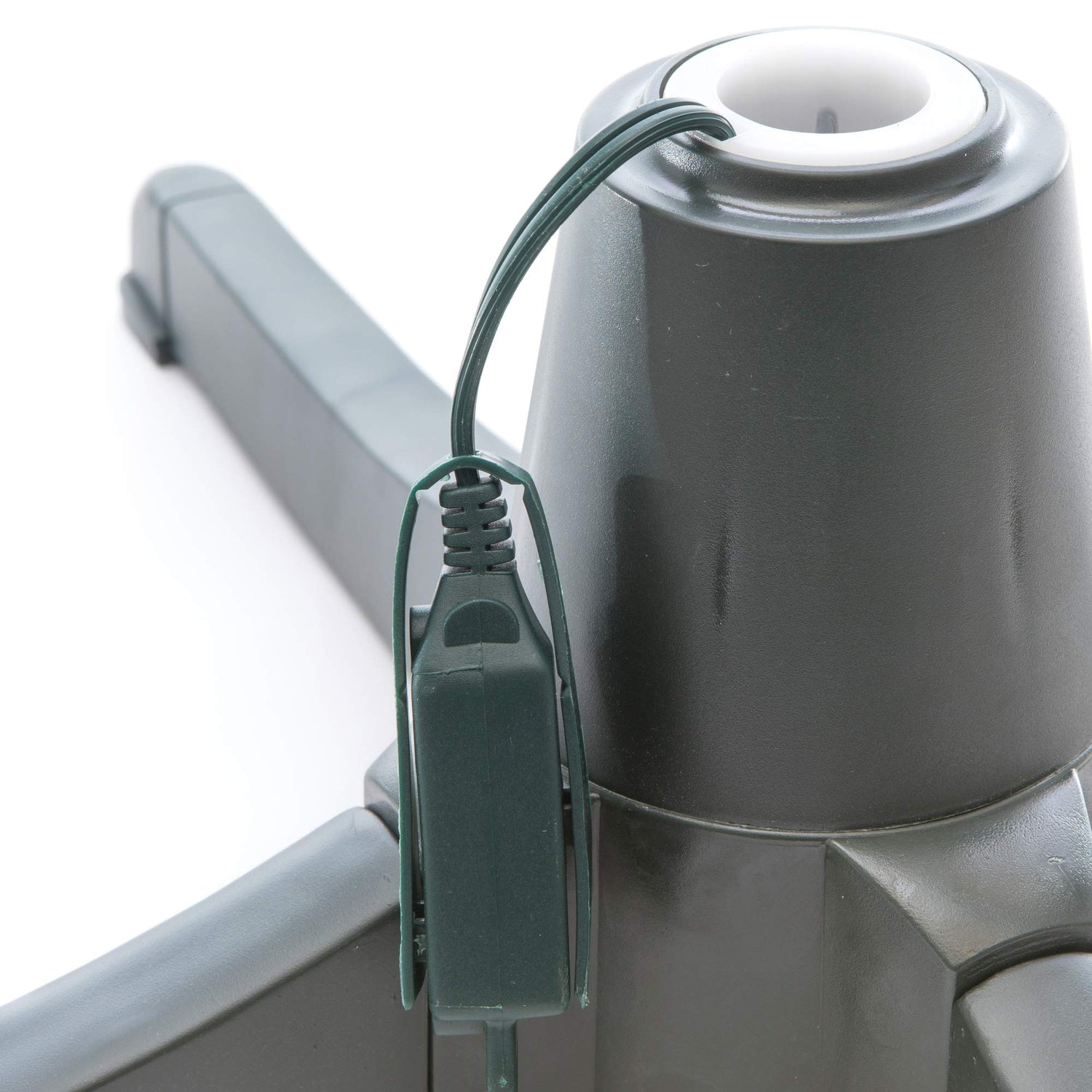 Details: Vickerman 24" powerful Electric Rotating stand for use with a 7.5' tree. Fits trees that weigh less than 80 lbs. with a pole size between 3/4" and 1 1/4". The full 360-degree revolution takes 70 seconds with no cord tangling. Includes a 6.5' green power cord with an On/Off switch at the base of the stand that allows you to choose between rotation or no rotation. Simply insert the tree into the stand, secure it with the included clamps, and turn on the motor for a dazzling display. The rotating base for Christmas tree features a secure and sturdy base that can hold trees weighing up to 80 lbs. Without wobbling or tipping over. There is no cord tangling. Includes a step switch that allows you to turn the rotating stand on and off without having to unplug it every time. For additional complimentary accents see the many wreaths and trees available from Vickerman. This rotating stand is maintenance free and will suit any decor. Vickerman has been an industry leader since 1940. Enjoy this expert designed seasonal rotating stand around your home.