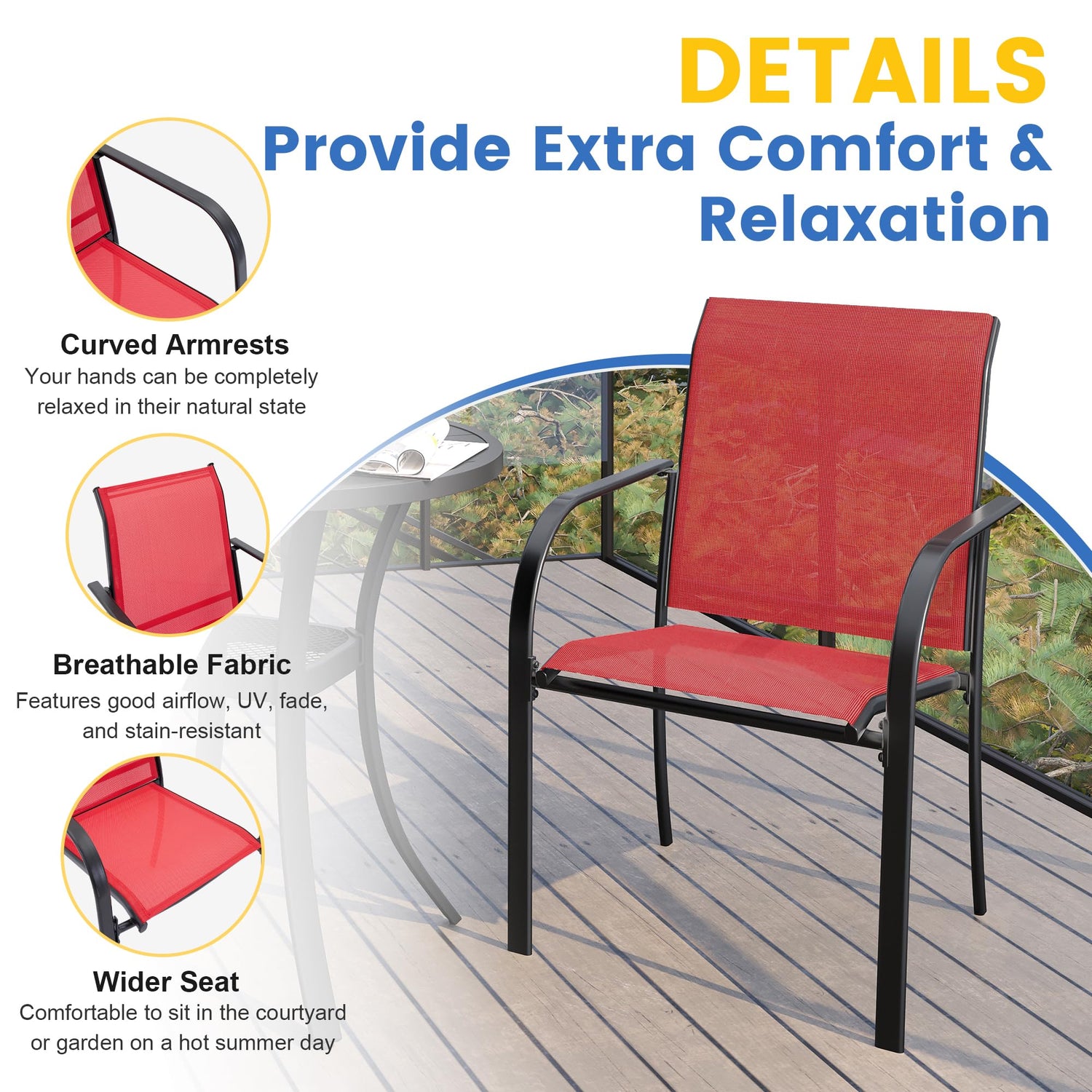 - 【Patio Dining Chairs】 Slight lawn chairs are stackable for space-saving and portability. Breathable patio chairs feature good airflow, UV, fade, and stain-resistant, comfortable to sit in the courtyard or garden on a hot summer day