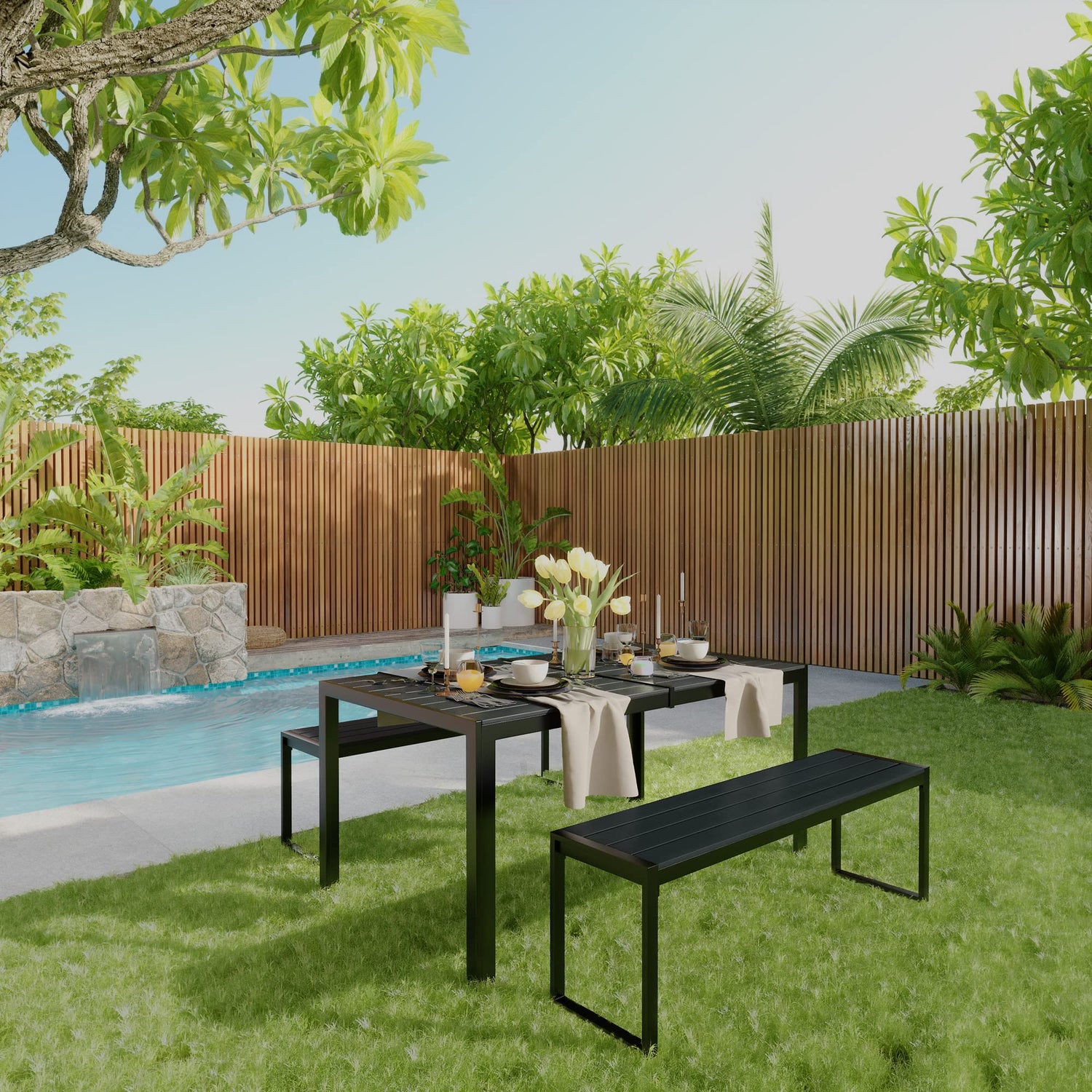 VICLLAX 3-Person Outdoor Bench 53" Long Garden Bench Metal Frame Backless Porch Patio Bench, Black