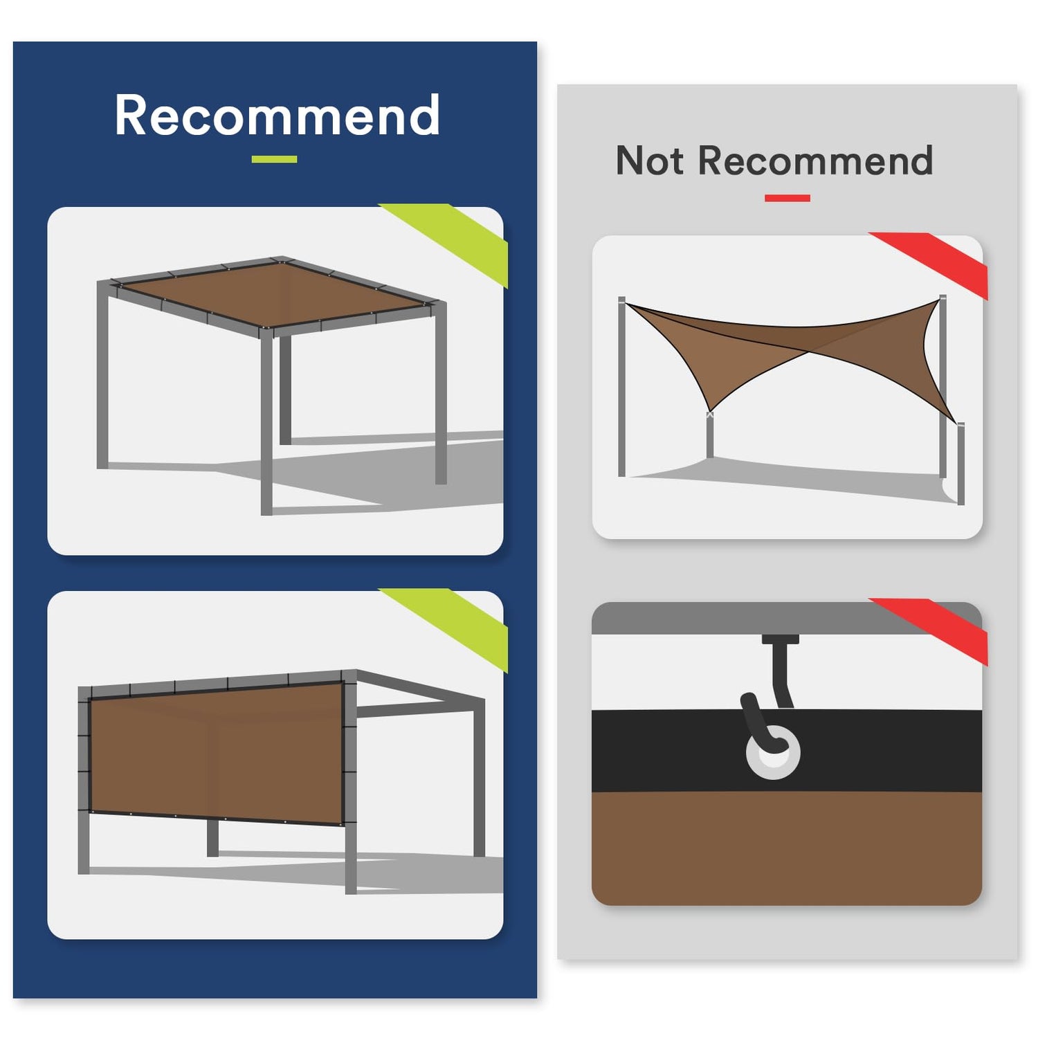 *Can block UV rays from above of your patio, pergola, gazebo, swimming pool area, gardens, children's play areas, carport, or other outdoor areas