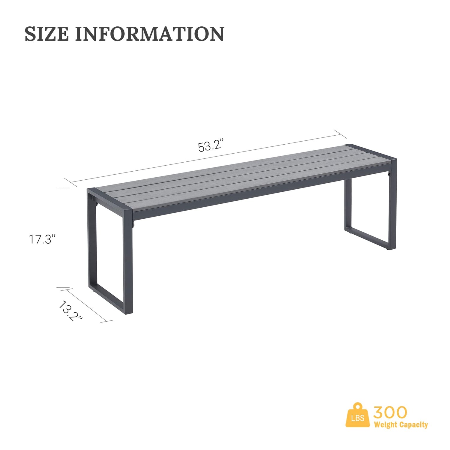 VICLLAX Outdoor Bench for Lawn Garden, Backless Patio Garden Bench, Grey Metal Frame