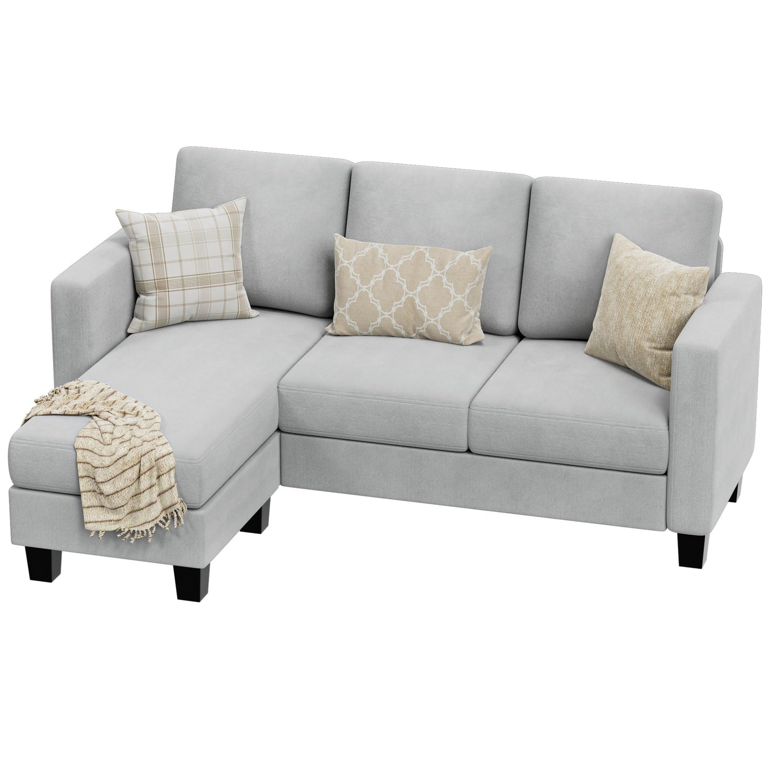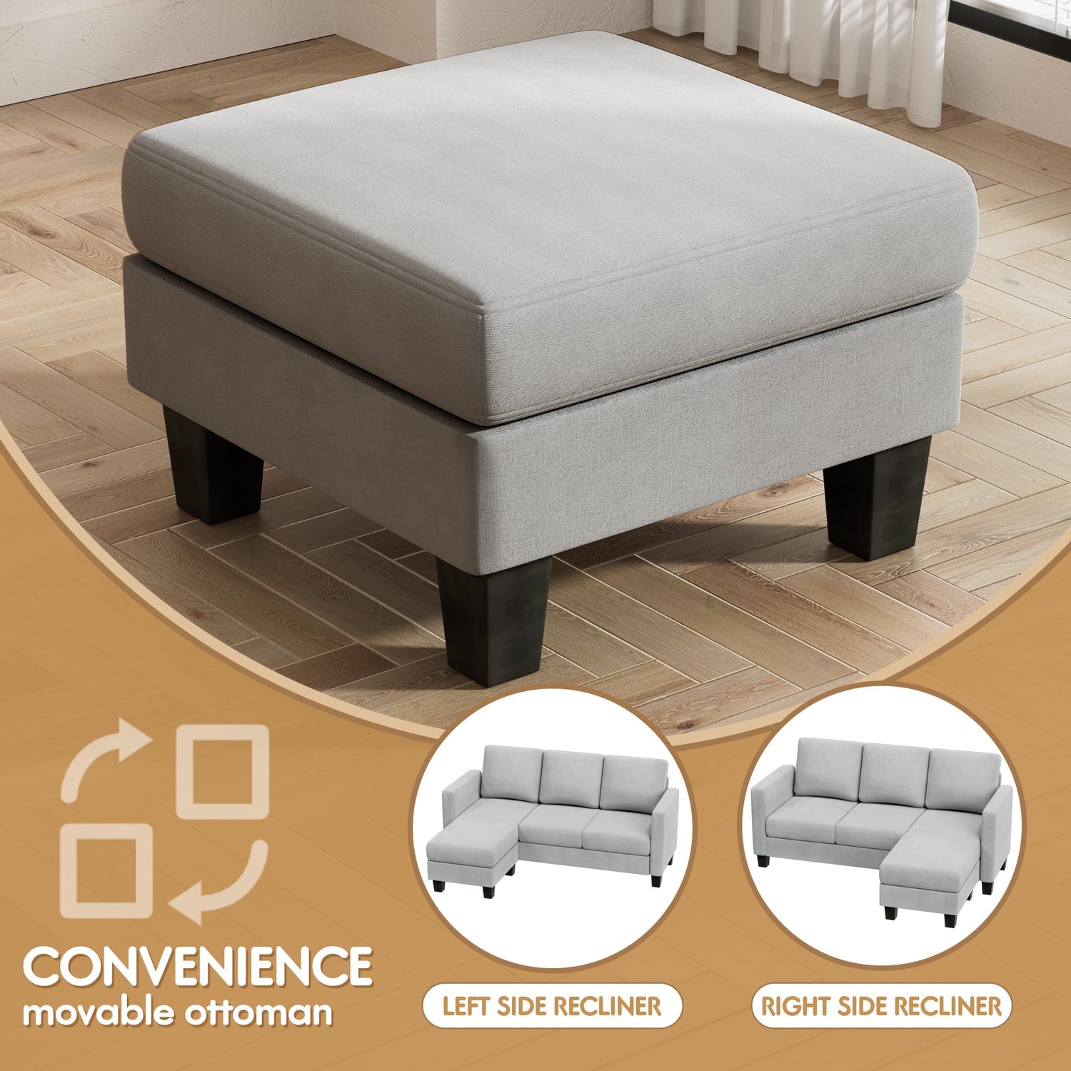 VICTONE Convertible Sectional Sofa Couch, 3 Seat L-Shaped Sofa with Linen Fabric Ottoman Small Couch for Small Apartments, Living Room and Office (Linen Fabric, Light Gray)