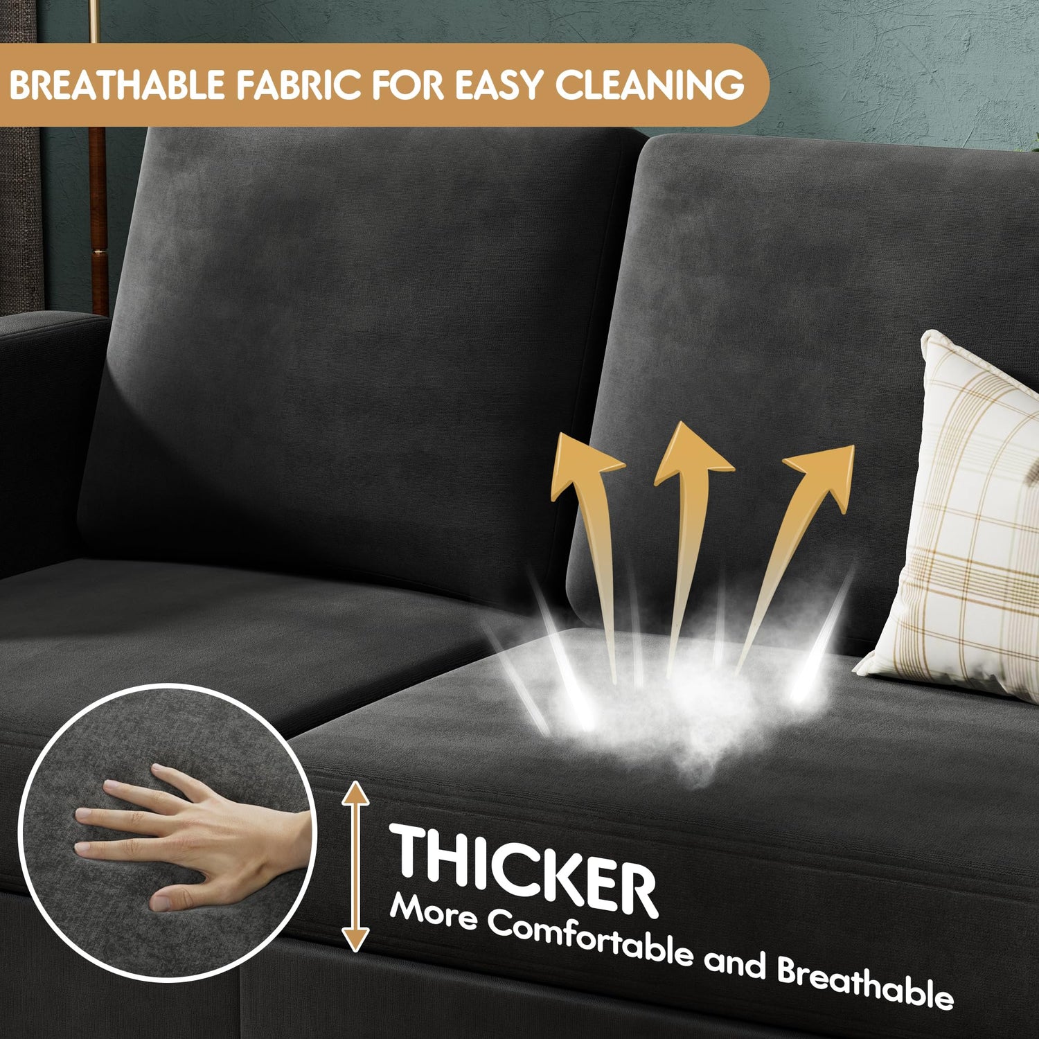 - Soft and Comfortable: This sofa is crafted from high-density sponge and covered with soft, colorfast fabric. Its high resilience provides a comfortable and soft cloud-like touch experience. The cushions are vacuum-packed, so we recommend allowing 48 hours for them to return to their original state