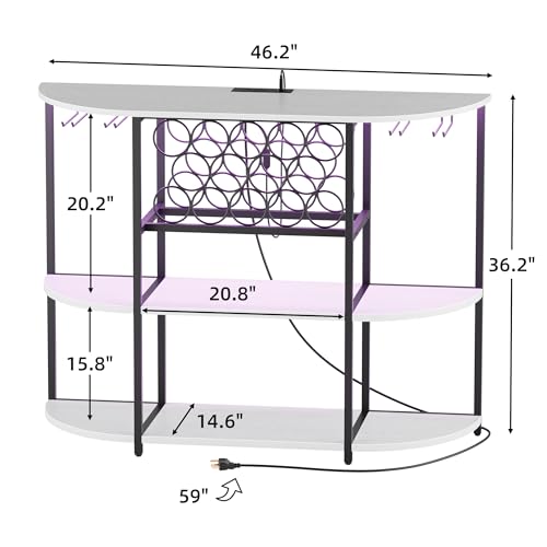 VICTONE Wine Bar Cabinet with LED Lights and Power Outlets, Freestanding Coffee Liquor Bar Cabinet with Glass Holder, Wine Rack Table for Home Kitchen Dining Room (White)