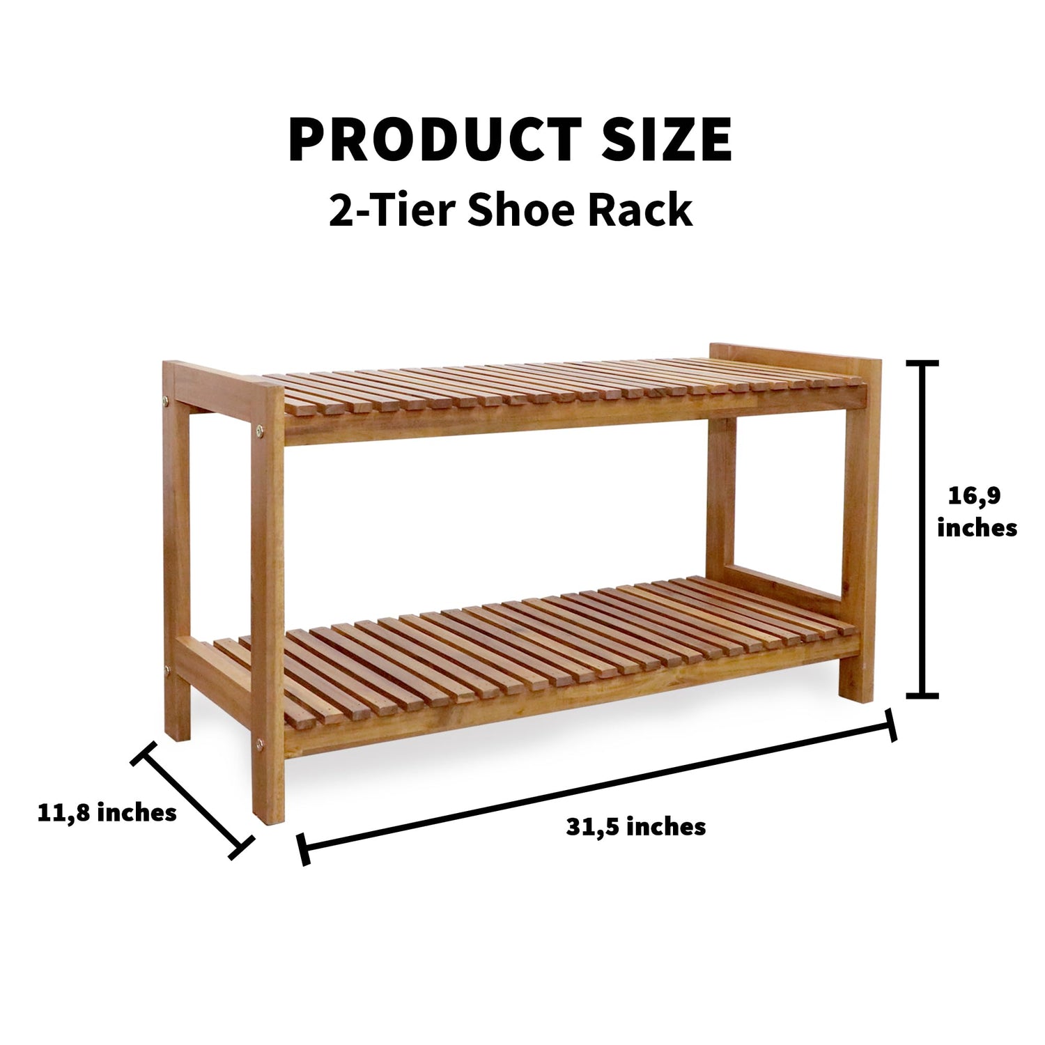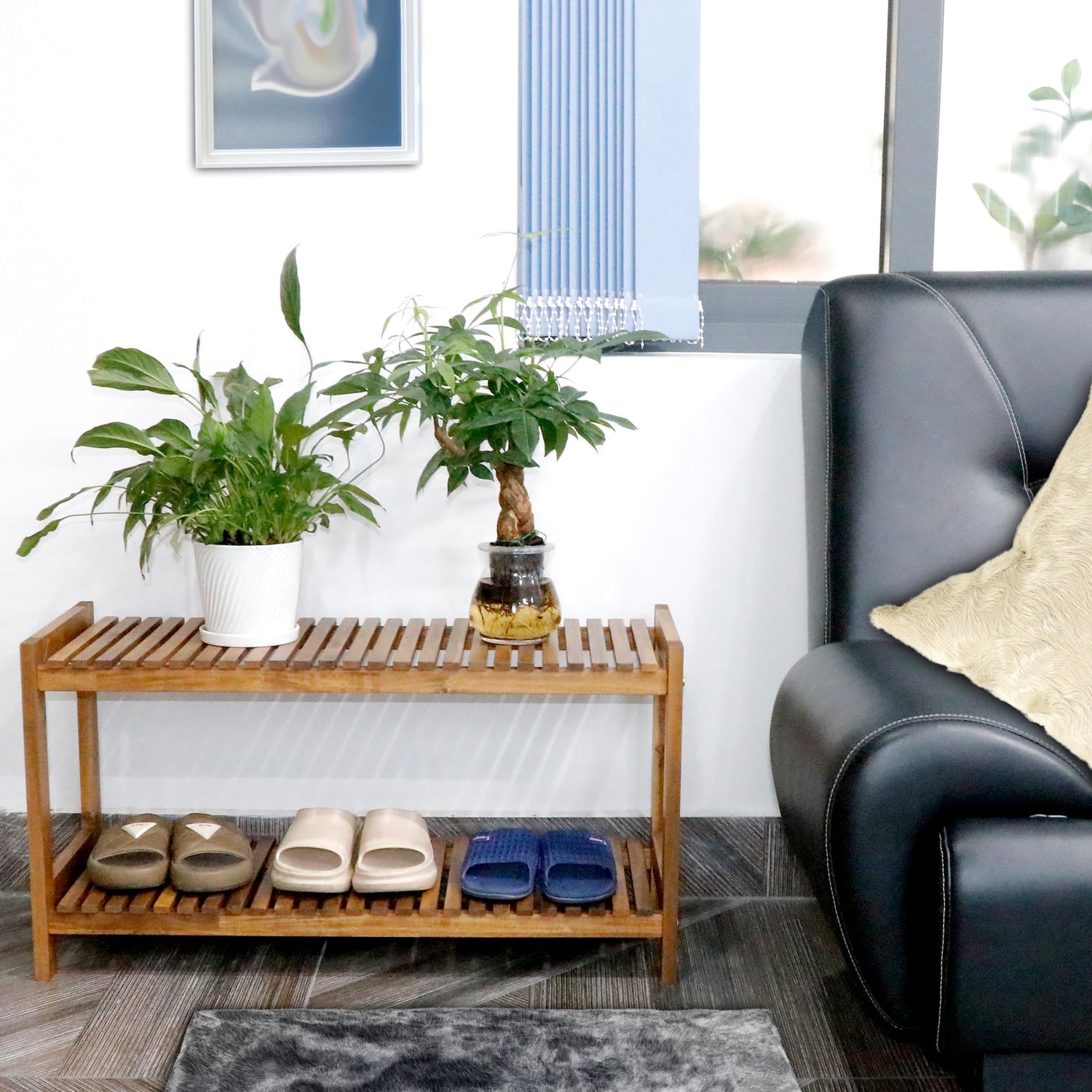 VICTORY RELAX 2-Tier Long Acacia Wood Shoe Rack, Wide Natural Shoe Storage Shelf for Entryway, Stackable Wooden Plant Stand Organizer for Closet, Bedroom, Kitchen, Indoor and Outdoor