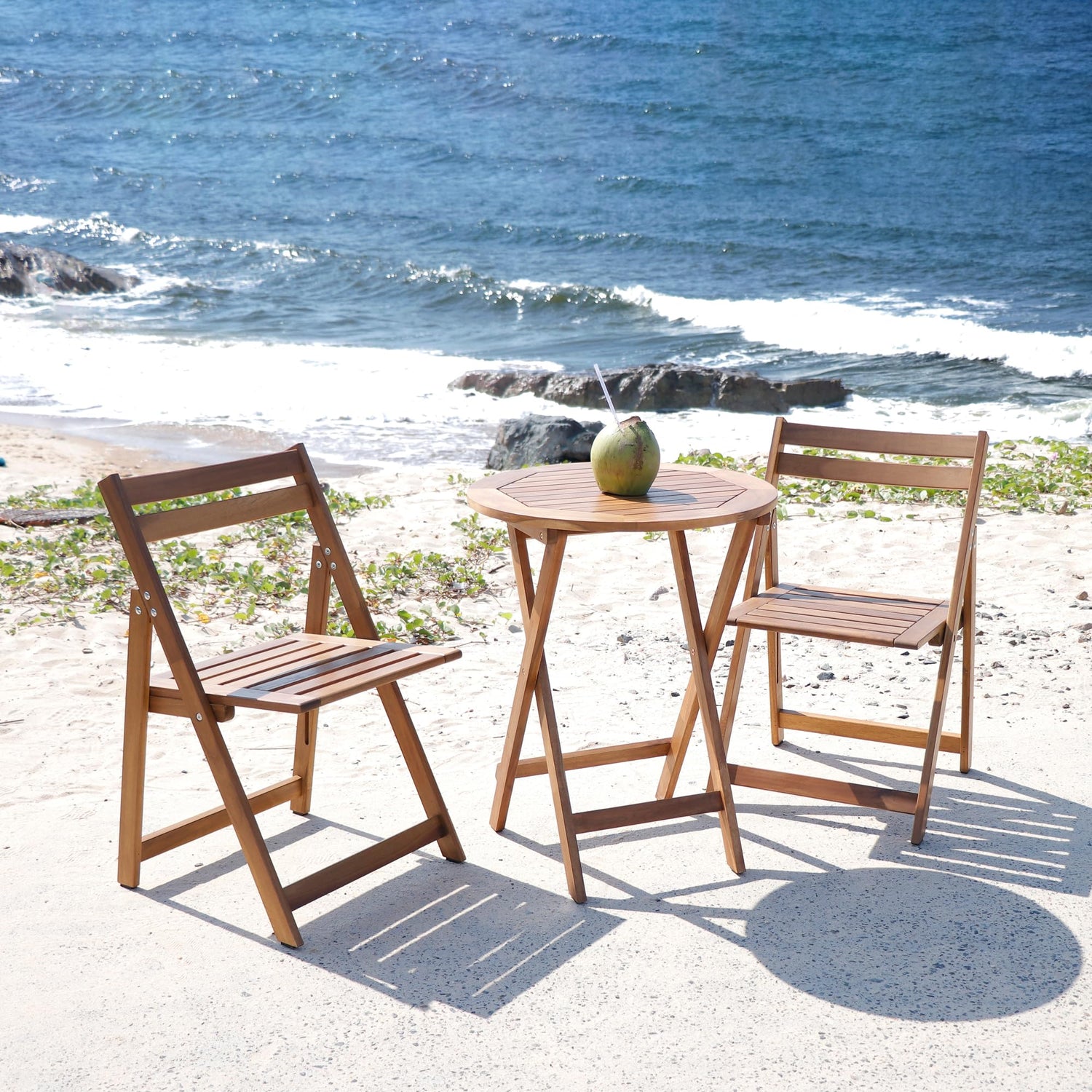 - SUITABLE FOR ALL OCCASIONS: since it is made of acacia wood, it works well whether you place it on your patio, balcony, garden, terrace, living room, poolside, etc., sunny or rainy days.