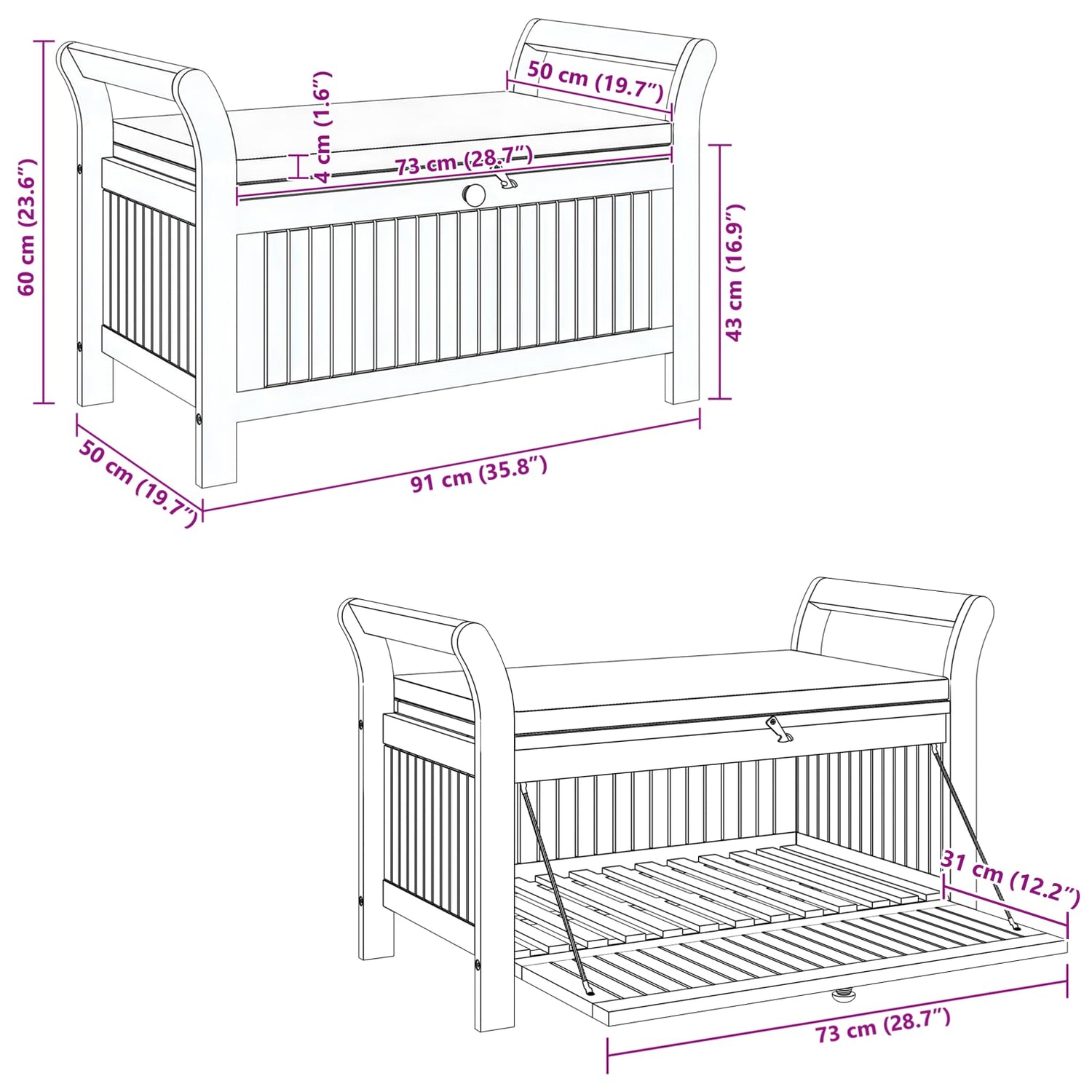 vidaXL Garden Storage Bench, Solid Acacia Wood, White Cushion Included, Classic Outdoor Design, Patio & Garden Seating, 35.8" x 19.7" x 23.6", Patio & Deck Organizer, Durable Wooden Furniture