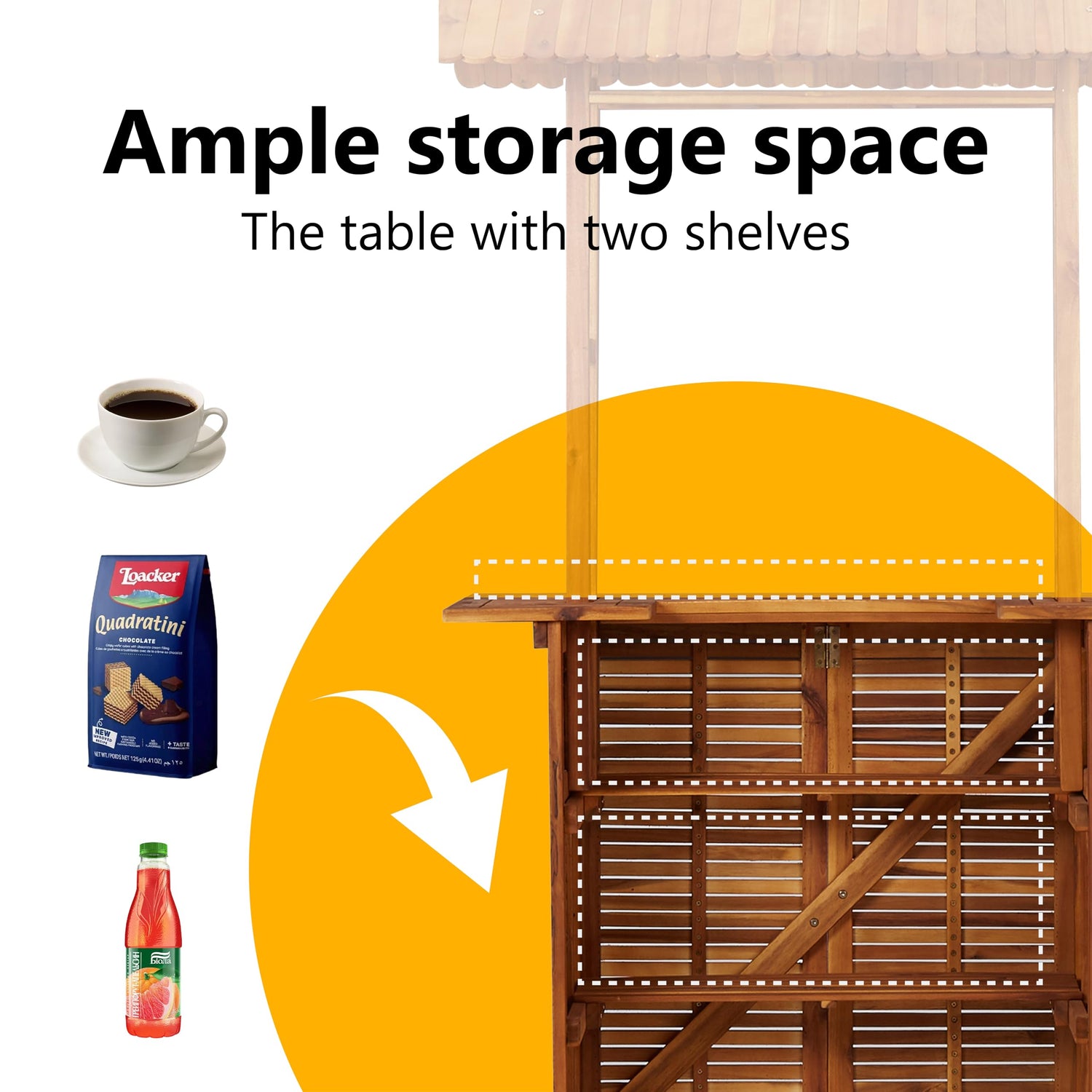 - Material: Solid Acacia Wood; Overall Dimensions: 113 x 106 x 217 cm (W x D x H); Bar Dimensions: 110 x 51 x 105 cm (W x D x H)