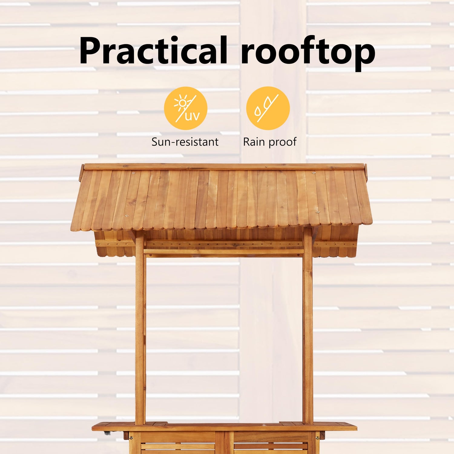 - This simple yet elegant roof top bar table will suit a wide variety of outdoor decor, such as gardens, courtyards, patios and decks.