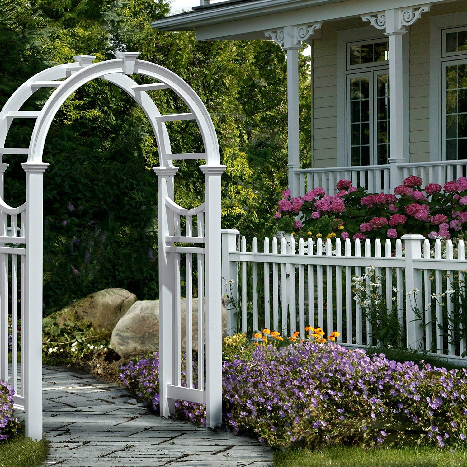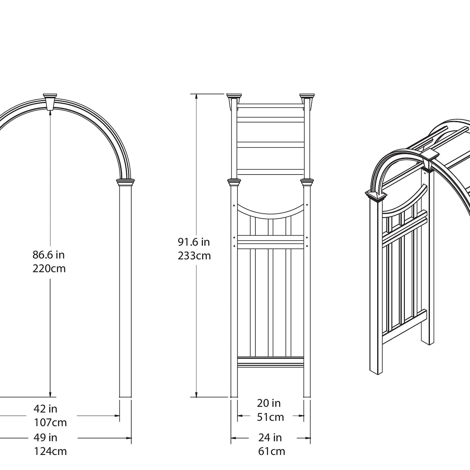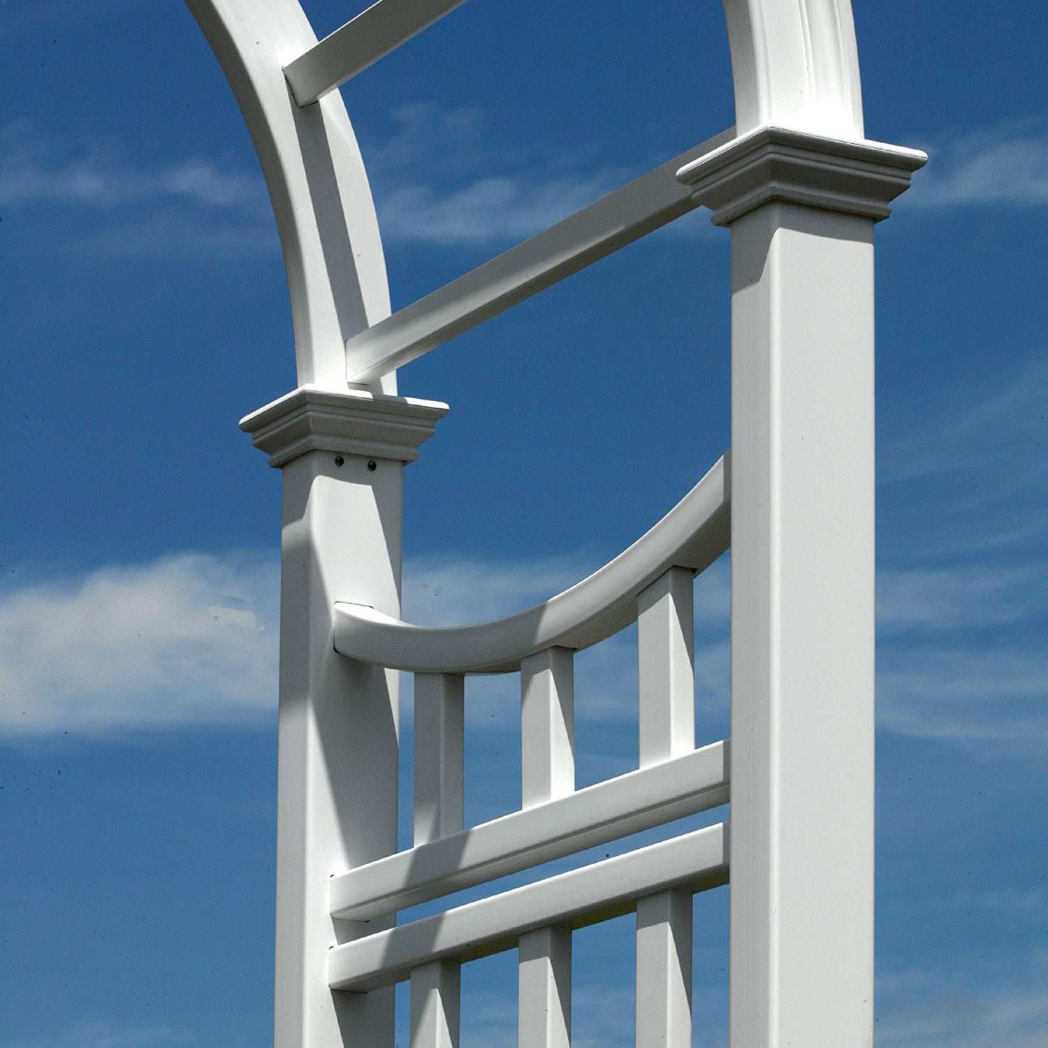 Details: The Vienna Arbor will add style and aesthetic interest to your yard, garden or pathway. Designed with the most authentic architectural detail, the Vienna Arbor offers a classic look that will set your yard apart, giving your property an added edge. Arbors also provide an attractive entrance to a yard or garden. Made of premium weather-resistant vinyl, the Vienna Arbor is maintenance free. Youll never have to stain, paint, or maintain your arbor again. We manufacture all of our products to create the look of wood without the traditional maintenance. In other words, you get the classic look of wood without the headaches. Just the occasional rinse with a garden hose is all you need to do to keep your arbor looking great year after year. We back this up with a 20 year warranty. Our detailed instructions give you all the information you need to assemble and install your arbor and technical support is only a phone call away.