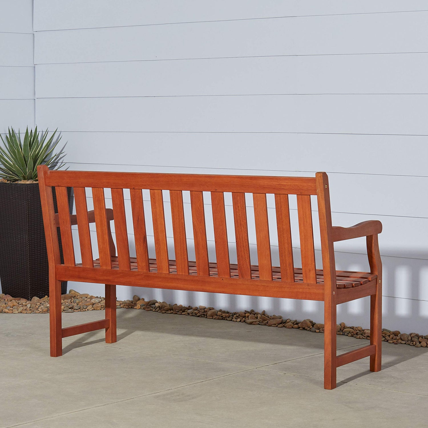 VIFAH Atlantic Red Brown 5Ft Slatted Eucalyptus Wooden Garden Bench for 3 Seater in Entry Way
