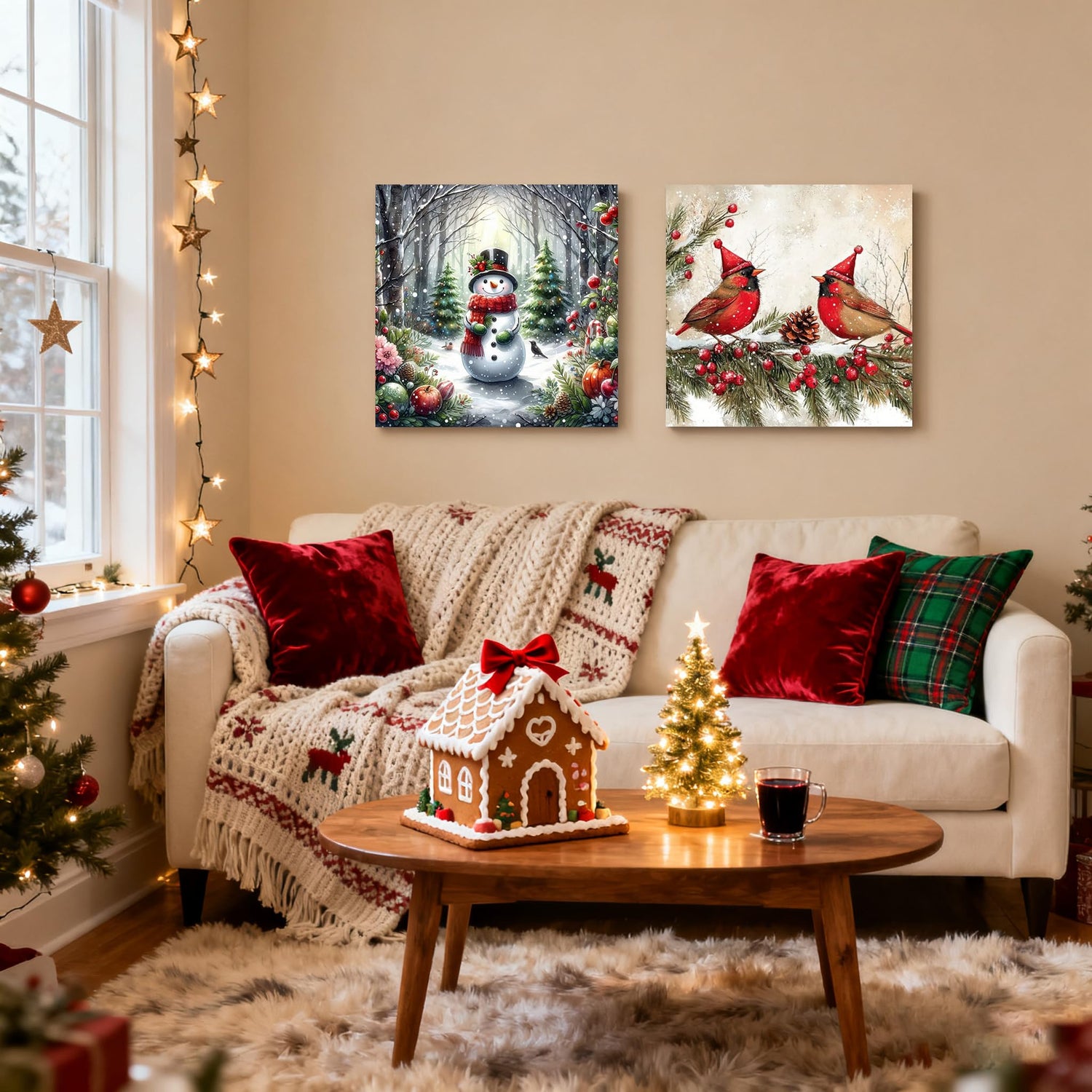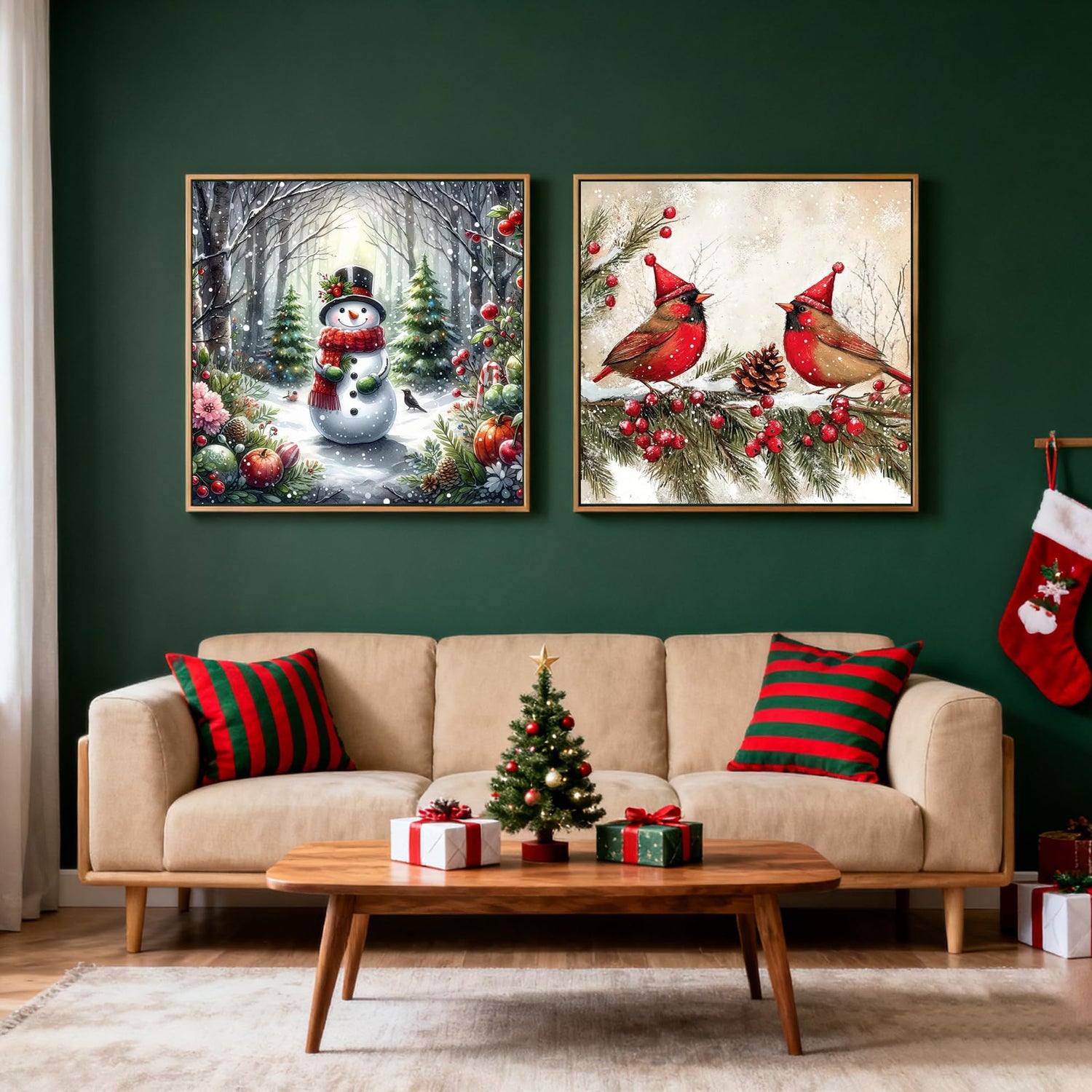 VIGEGU 2 Pack Christmas Paint by Numbers Kit for Adults Beginner with Frame,Cardinal Birds Paint by Number with Wooden Easel DIY Adult Snowman Paint by Number Kits for Home Decor 10x10 in