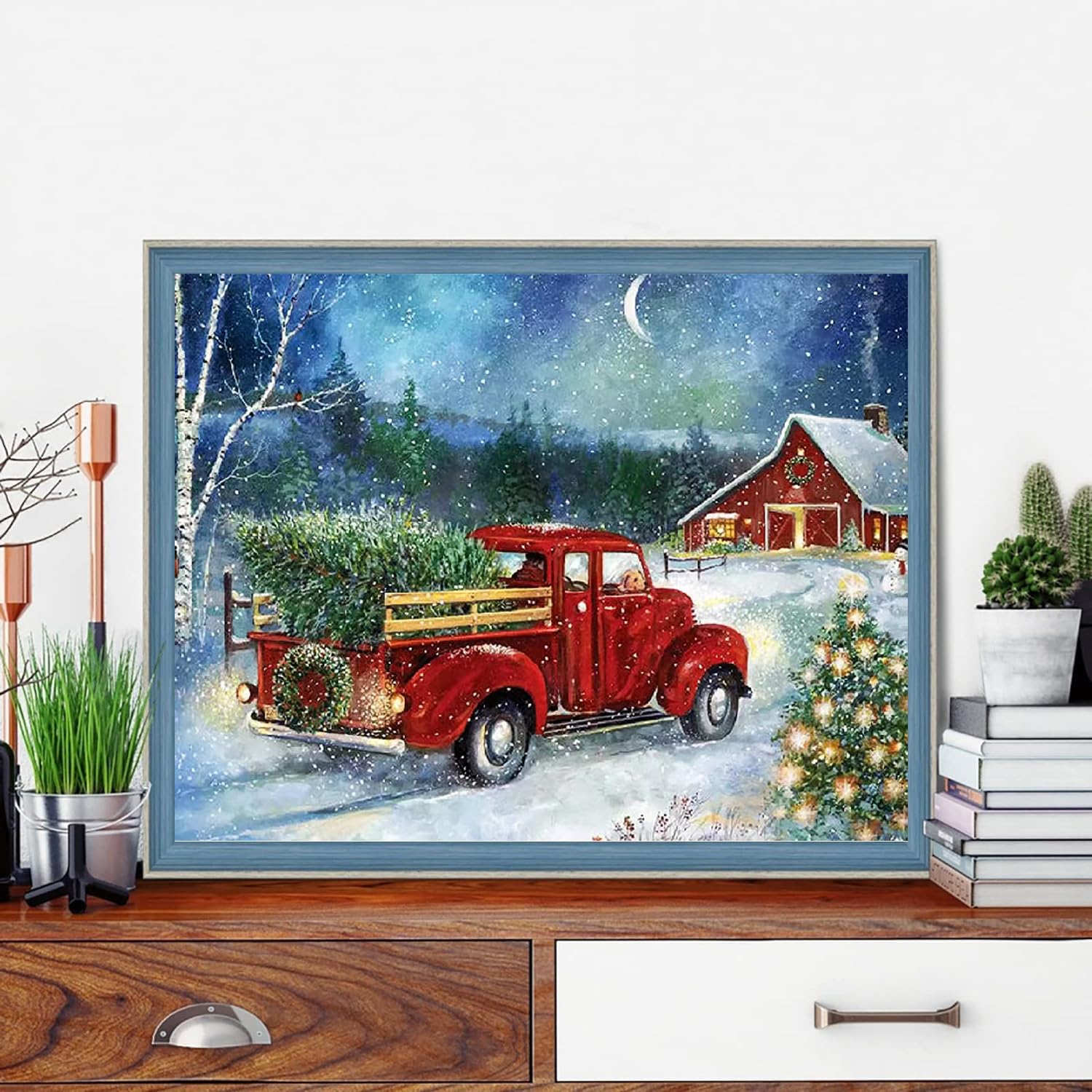 VIGEGU Christmas Paint by Numbers Kit for Adults with Framed,Truck Christmas Tree House Paint by Number DIY Acrylic Adult Paint by Number Kits for Wall Decor 10x12in