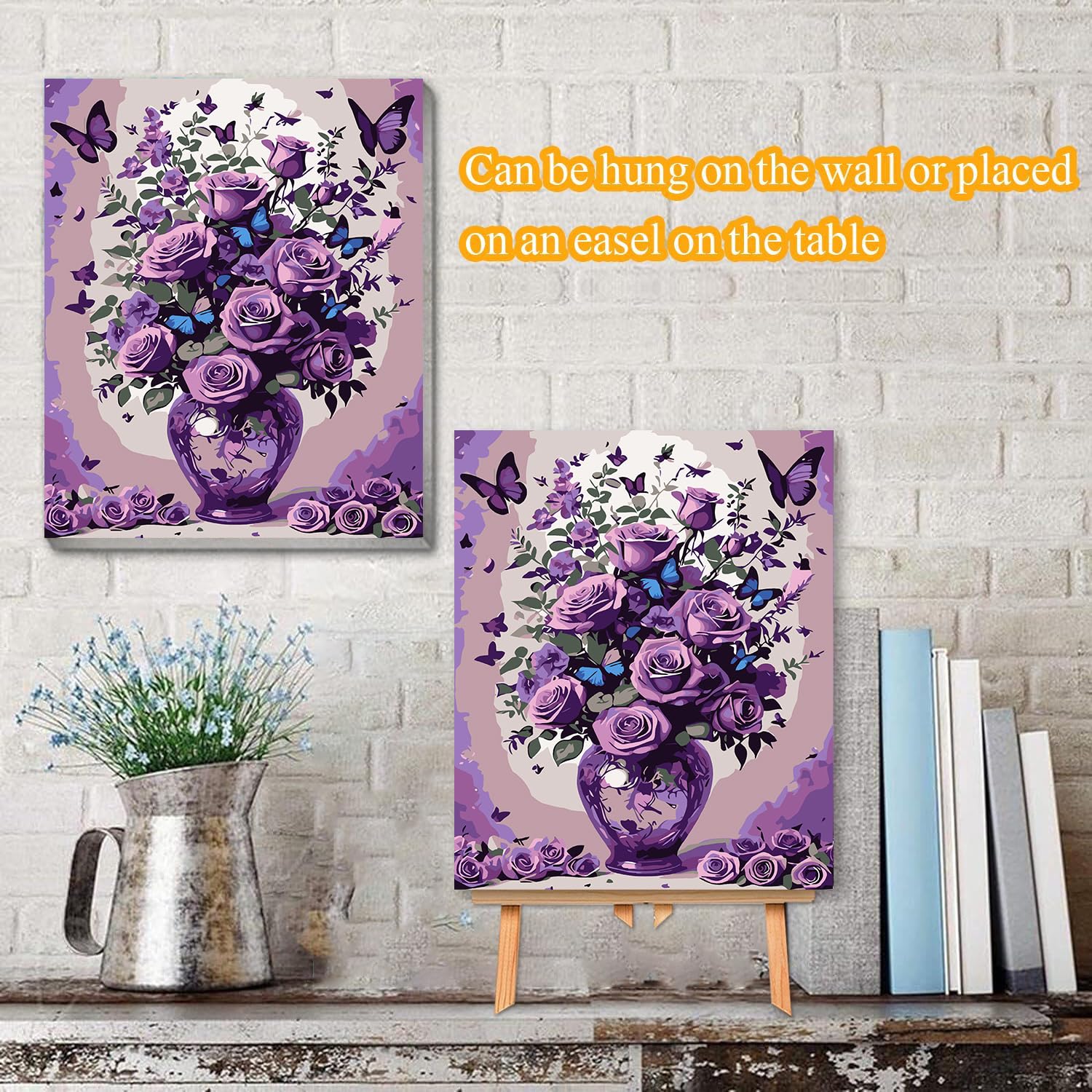 VIGEGU Rose Paint by Numbers Kit for Adults with Framed - Flower Paint by Number with Wooden Easel DIY Adult Paint by Number Kits Box Pack Acrylic Oil Painting for Wall Decor 9.5x12in