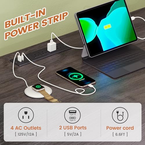 - 【Power Outlets & LED Light】The computer desk includes 4 outlets and 2 USB ports(Type-A & Type-C) to power 6 devices simultaneously including phones, tablets, and laptops. The gaming desk is equipped with RGB LED lights, which feature over 60,000 colors and 29 flash patterns controlled via APP or keystrokes. The strips have built-in music synchronization function, which can change the light color according to the rhythm of sound and music, lighting up gaming atmosphere.