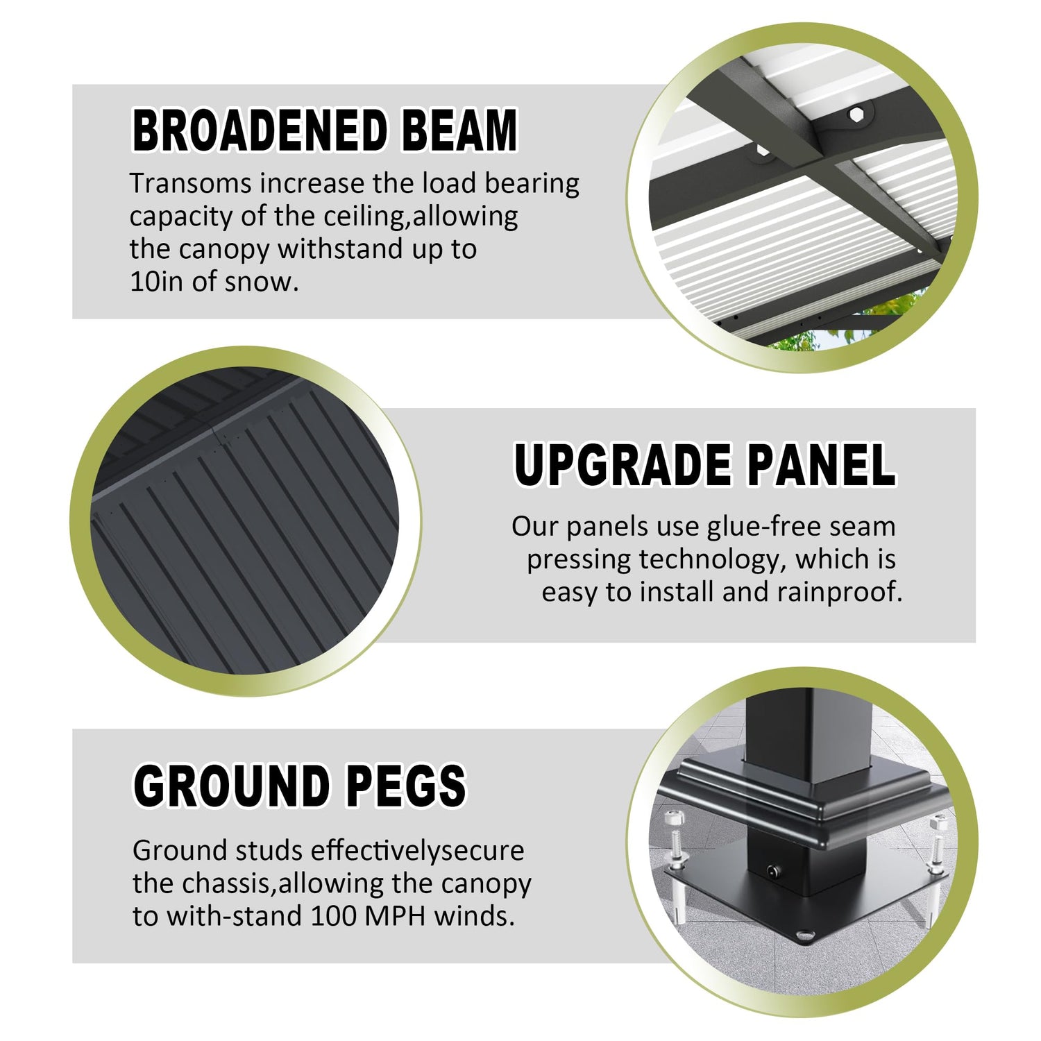 - 【UPGRADED RAINPROOF CANOPY】Different from the carports on the market,our canopy adopts a vertical stripe design, which is more conducive to the drainage of rainwater, canopy is installed with a press seam design to prevent rain leakage.