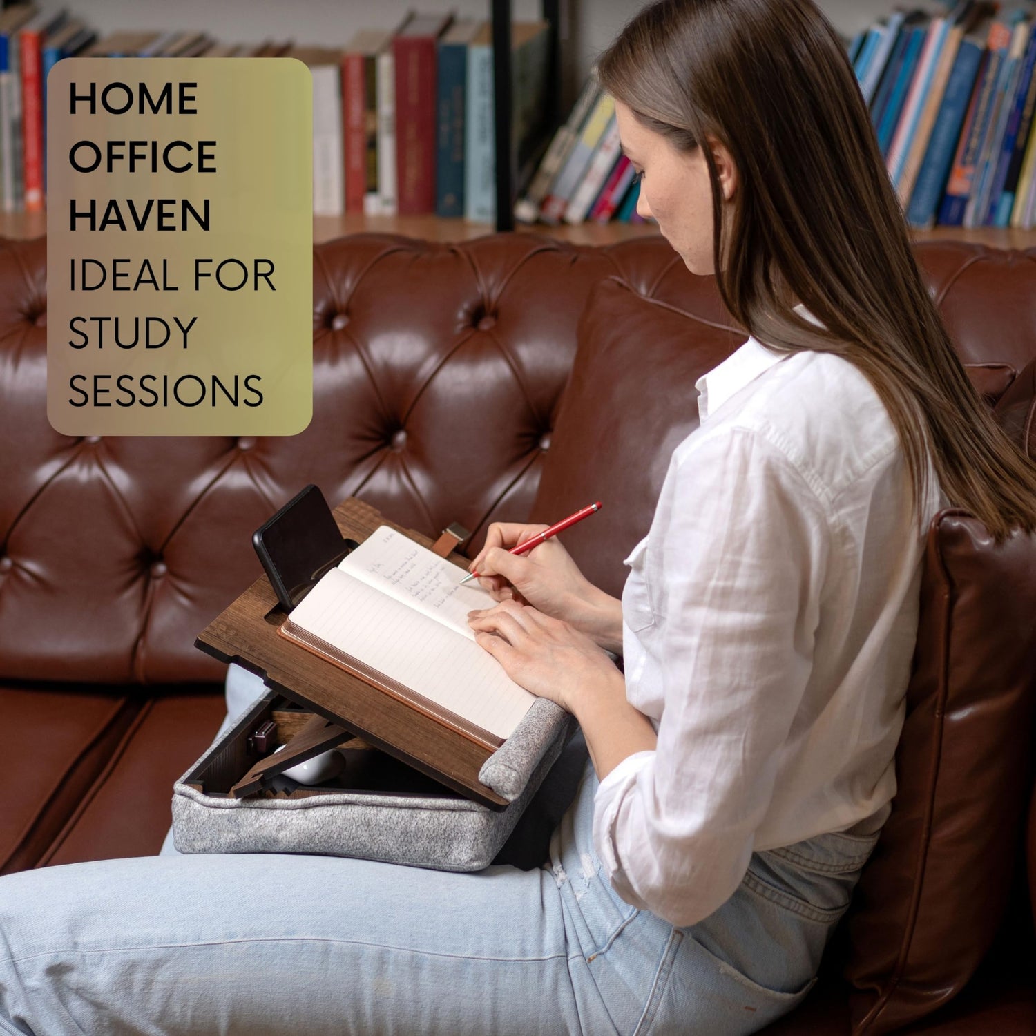 - ❇️ LIGHTWEIGHT & COMFORTABLE: Our Vigo wood laptop desk is designed with your comfort in mind. Featuring soft and cozy cushions on the bottom and a wrist pad, it ensures a comfortable typing experience while maintaining the right angle for perfect posture. Say goodbye to neck, back, and wrist pain with this portable laptop desk, perfect for work from home on the couch or bed. It's not just a lap desk; it's your lap desk for kids and adults. 😌💻
