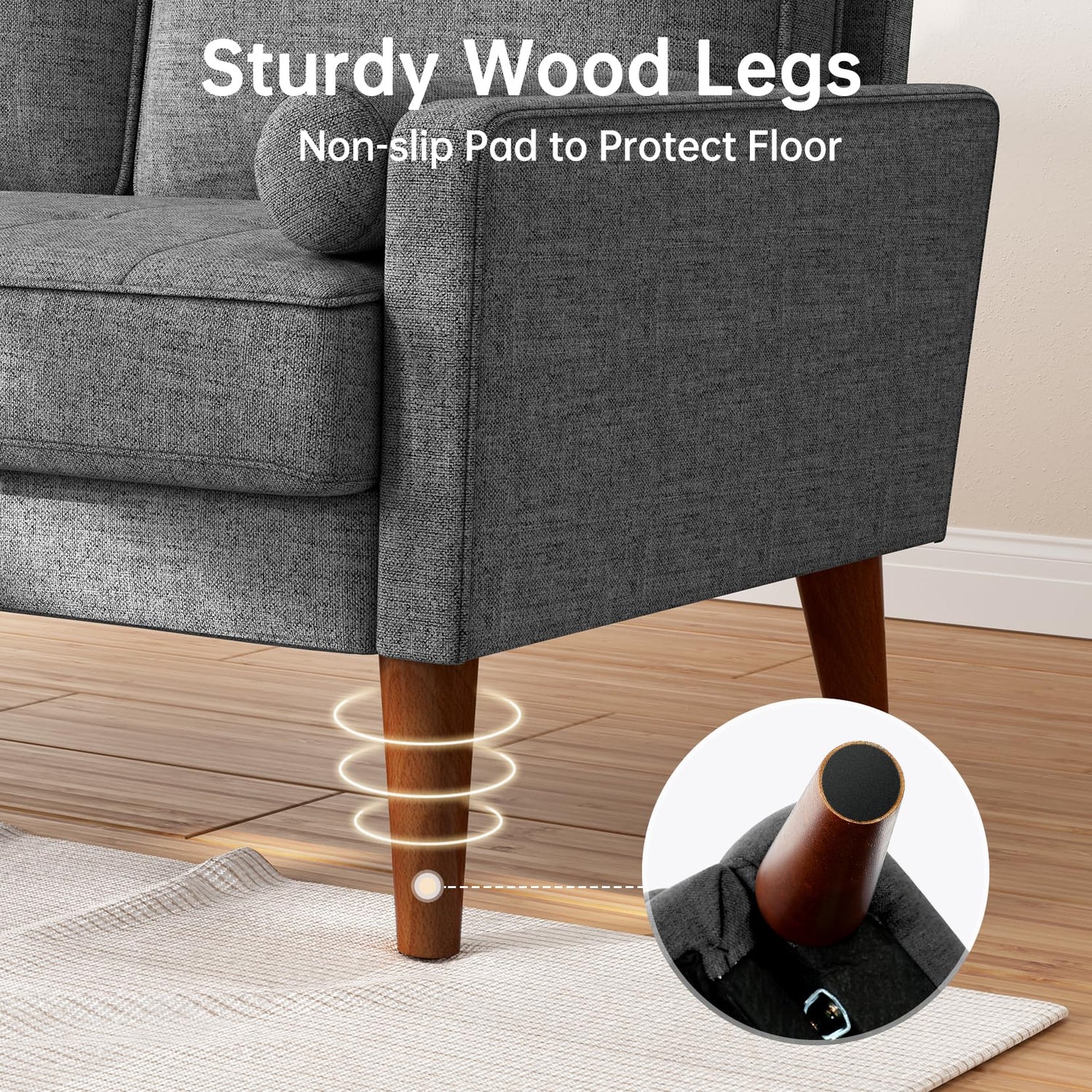 Viihousiom 48" Sofa Loveseat, Mid Century Couch for Small Spaces, Bedroom and Living Room, Removable Cover Spring Cushions, Solid Wood Frame, Easy to Install, Grey