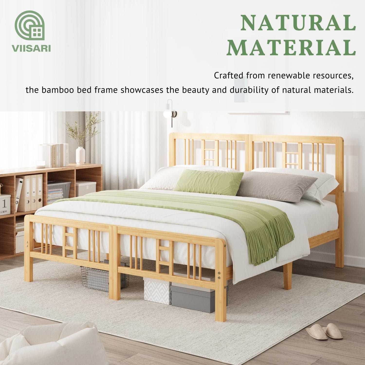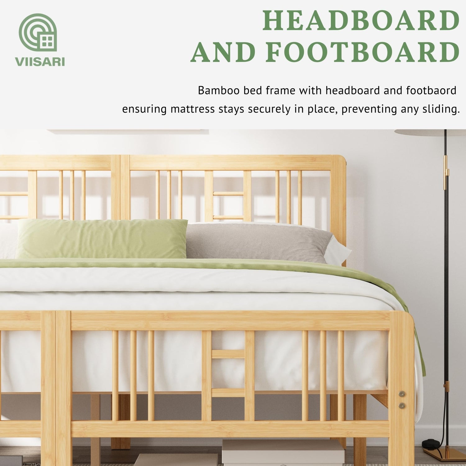 Viisari Bamboo Wood King Size Bed Frame with Headboard and Footboard, 10 Inch Platform King Bed Frame with Steel Slats, Solid Foundation, Easy Assembly, Ample Under-Bed Storage, Noise-Free