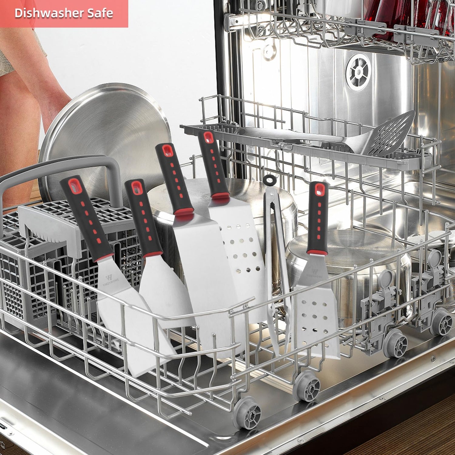 - 【PERFECT GIFT SET】 Griddle accessories kit is a great gift for men or anyone who likes to grill. The park, camping, backyard are the best places for barbecue and grilling. Perfect size for picnics and easy to store in the trunk or kitchen. This professional griddle tools will meet most cooking needs, ideal for Outdoor BBQ, Teppanyaki.