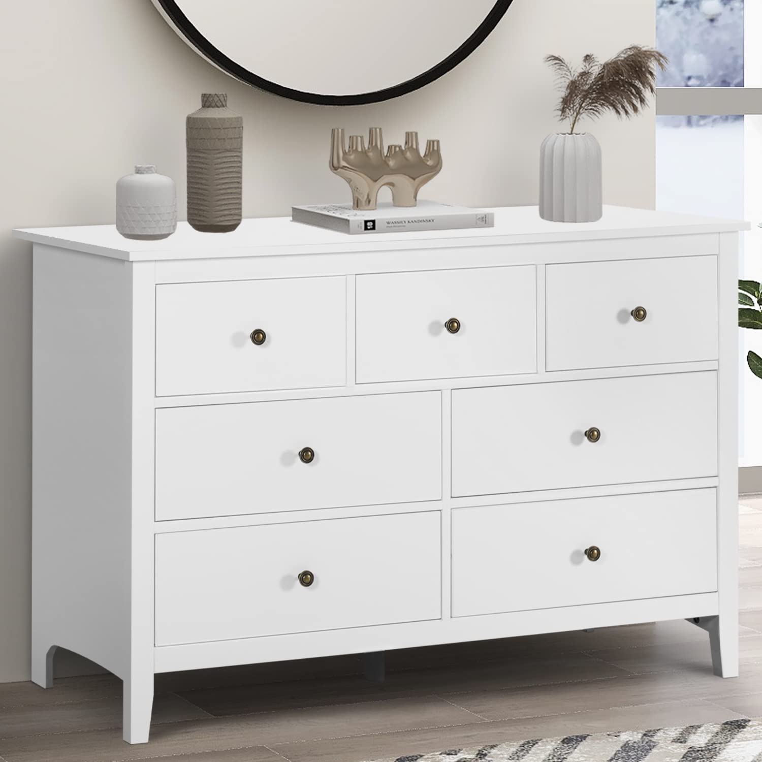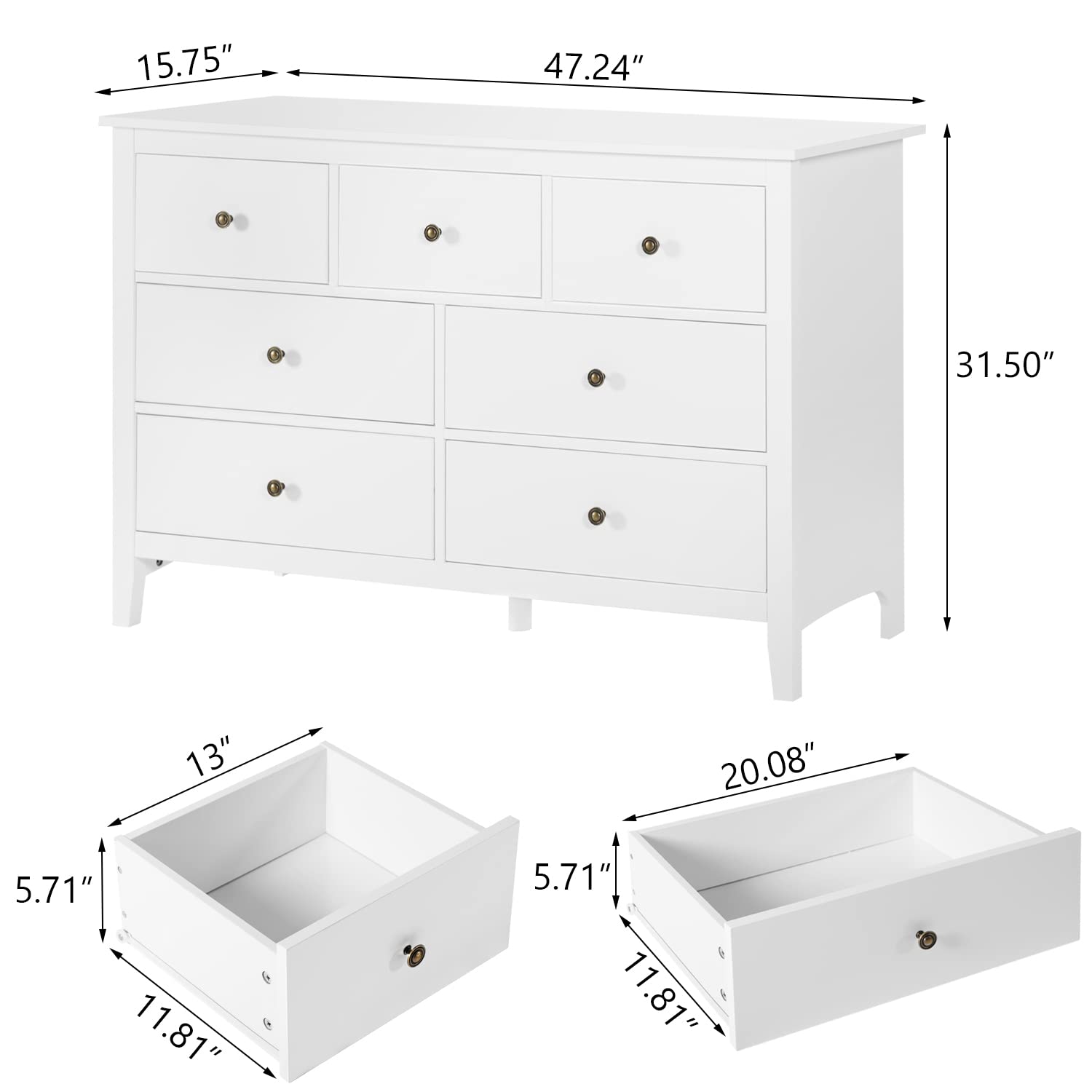 Vikiullf White Dresser - 47 in Modern Dresser for Bedroom, Wooden 7 Drawer Dresser, Storage Cabinet for Bedroom, Living Room, Hallway, Entryway