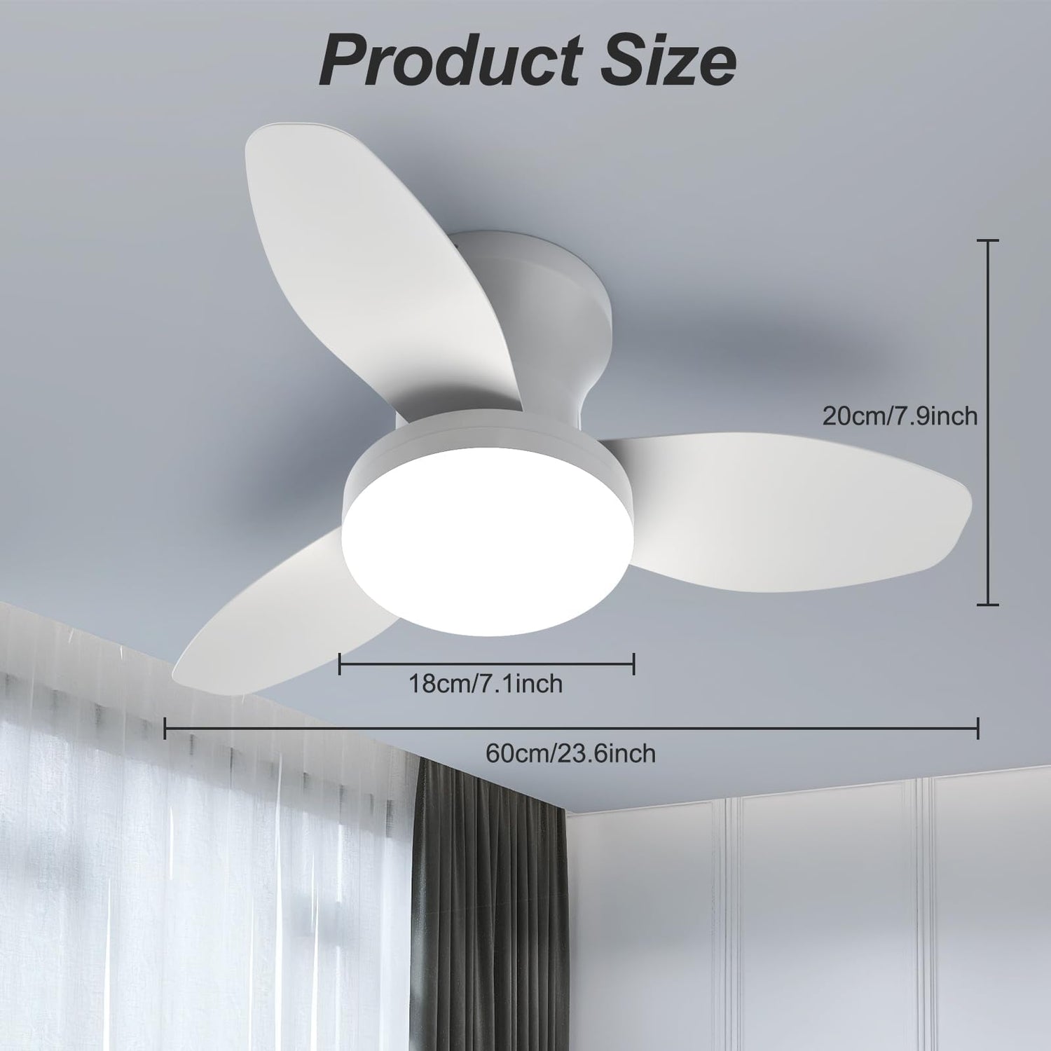 Vilante Ceiling Fans with Lights, 24 Inch Low Profile Ceiling Fan with Light and Remote Control, Dimmable, 6 Speeds, 3CCT, Flush Mount, Quite, Reversible DC Motor Modern Ceiling Fan for Bedroom