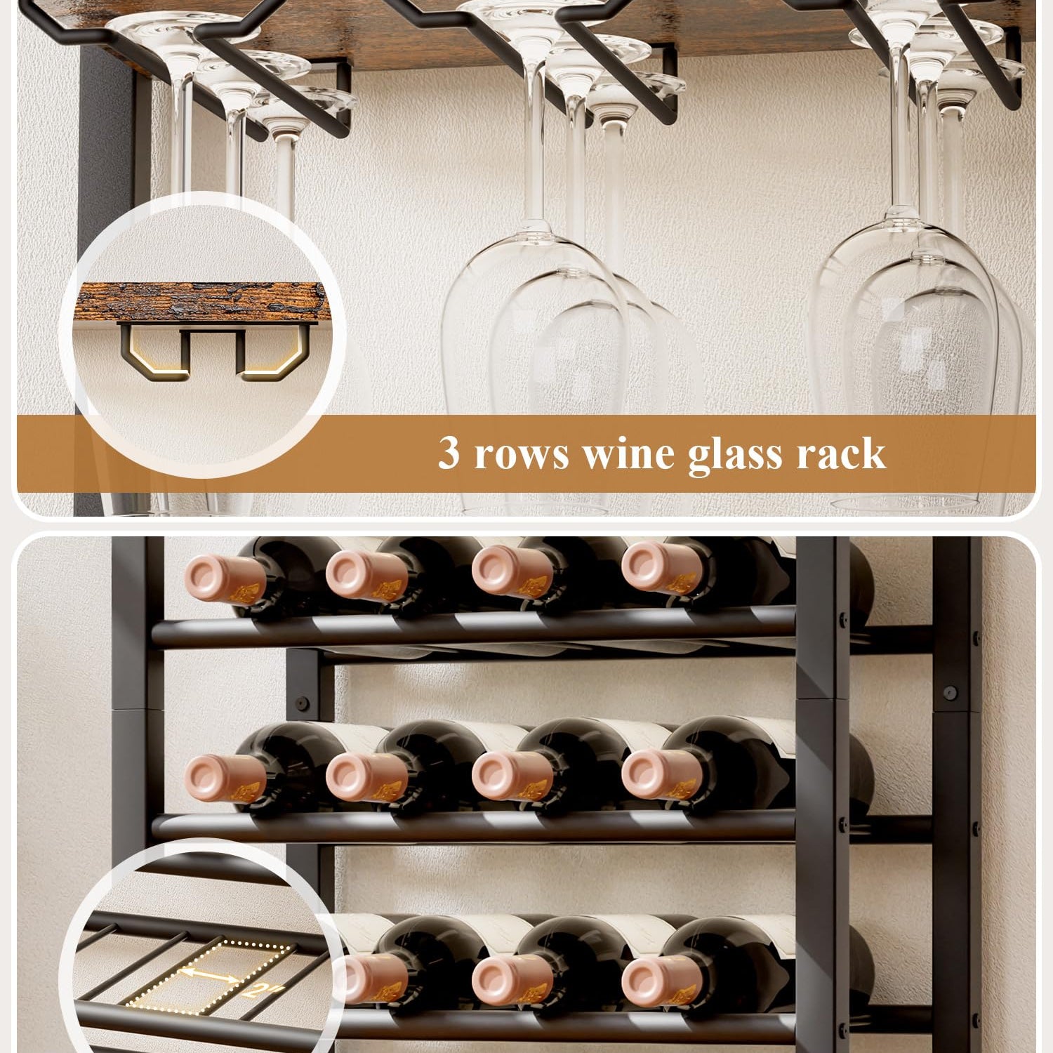 - Classic and Industrial Style: The wood grain design gives the wine and liquor rack an elegant and stylish look,which can effortlessly blend into multiple settings such as the living room, restaurant, or bar counter. Its sophisticated charm not only showcases your fine wine collection but also adds a touch of class to any space it occupies
