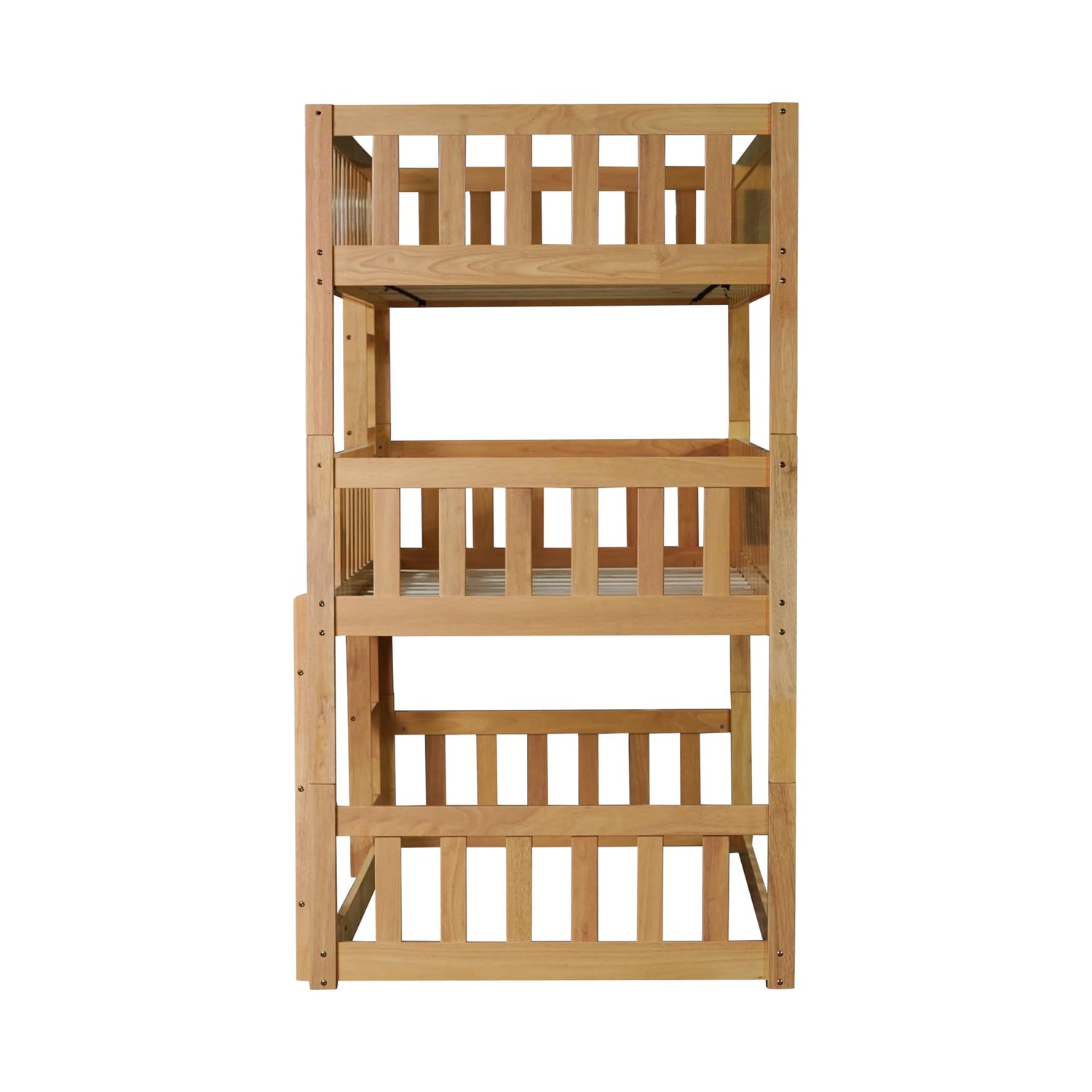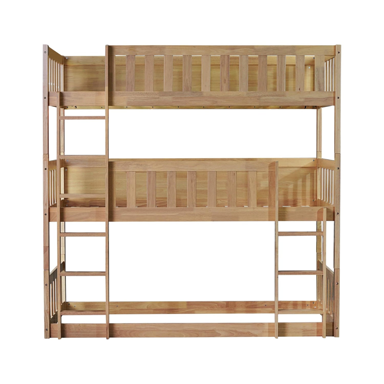 - 【Safety and Quality Guaranteed】This bunk bed is crafted mainly from high-quality solid rubber wood, providing lasting sturdiness and durability. The two built-in ladders are constructed with firmly secured steps, forging solid stability that leads to middle bunk and top bunk respectively. The triple bunk bed features full-length guardrails on the upper and middle bunk to prevent accidental falls.