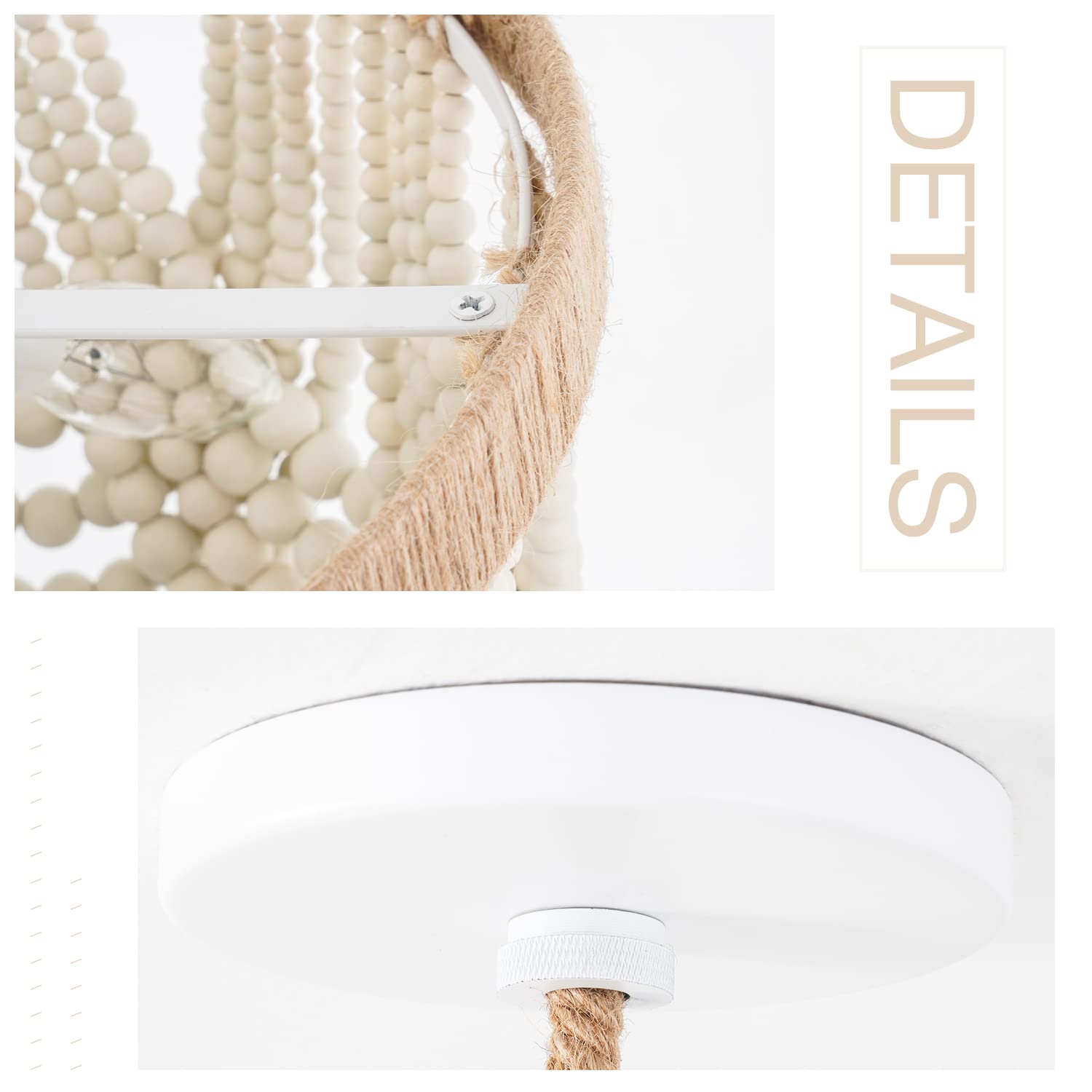 - Design: This pendant light decorated classic bohemia style elements made up of solid ivory white wood bead and hand rope knot, creating an eye-catching look that lends bohemian flair to any area. Three light bulbs cast their warm glow throughout your space.
