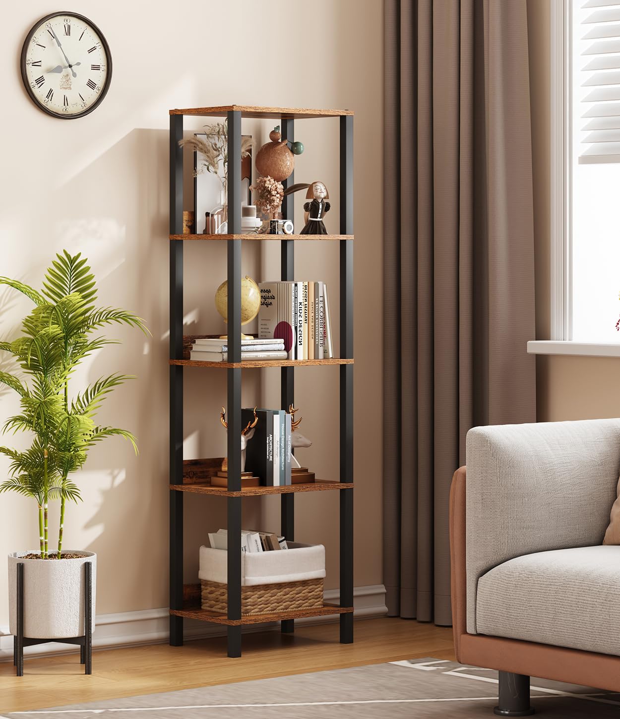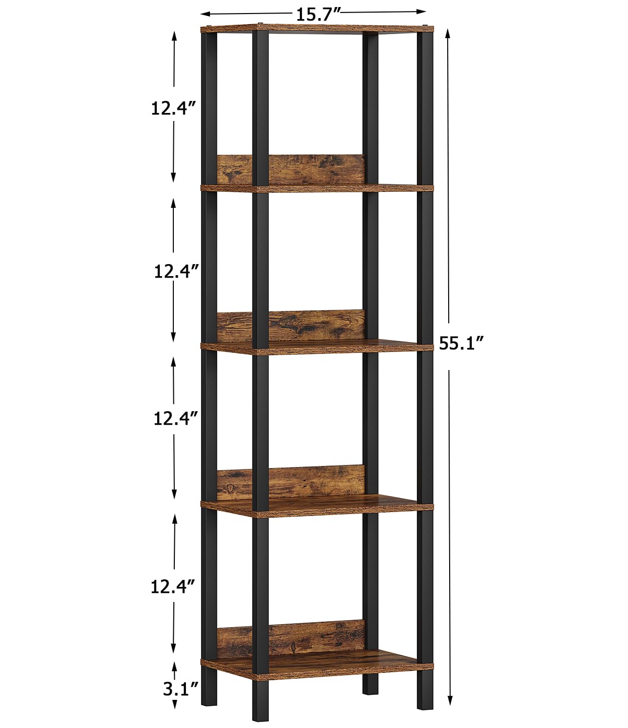 - [Elegant Classic Design]: This home bookshelf perfectly combines the black frame with the relic brown particle board, simple, sturdy, and functional. You can put it in your living room, study room, bedroom, and office. A grand and elegant look that adds a touch of freshness to your home.