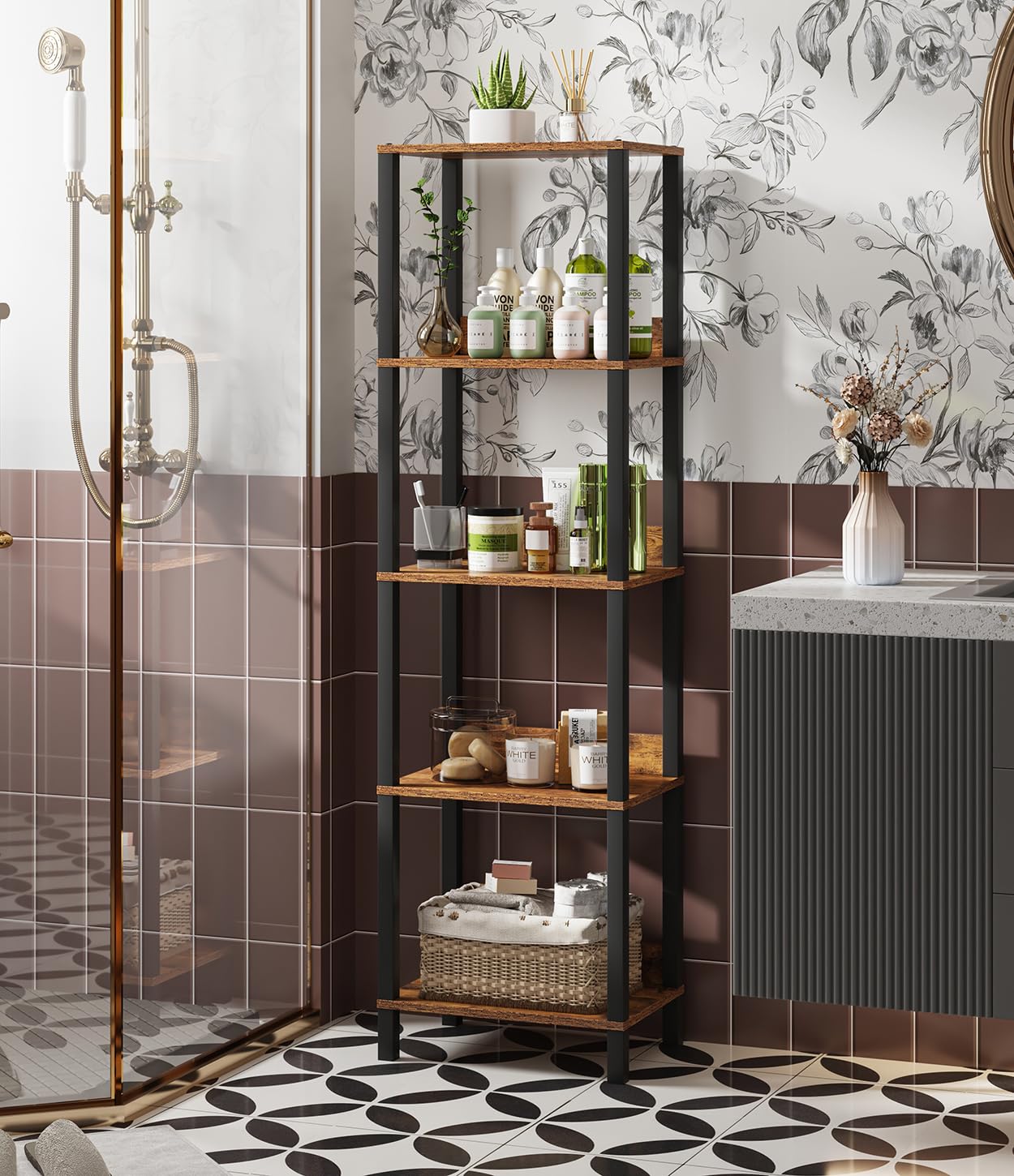 VIMBER 5-Tier Bookshelf with Anti-Fall Baffle, Tall Bookcase for Books, Garage Kit, CDs, Movies, Industrial Standing Bookshelves Storage Organizer for Bedroom Office Living Room USSJ001F