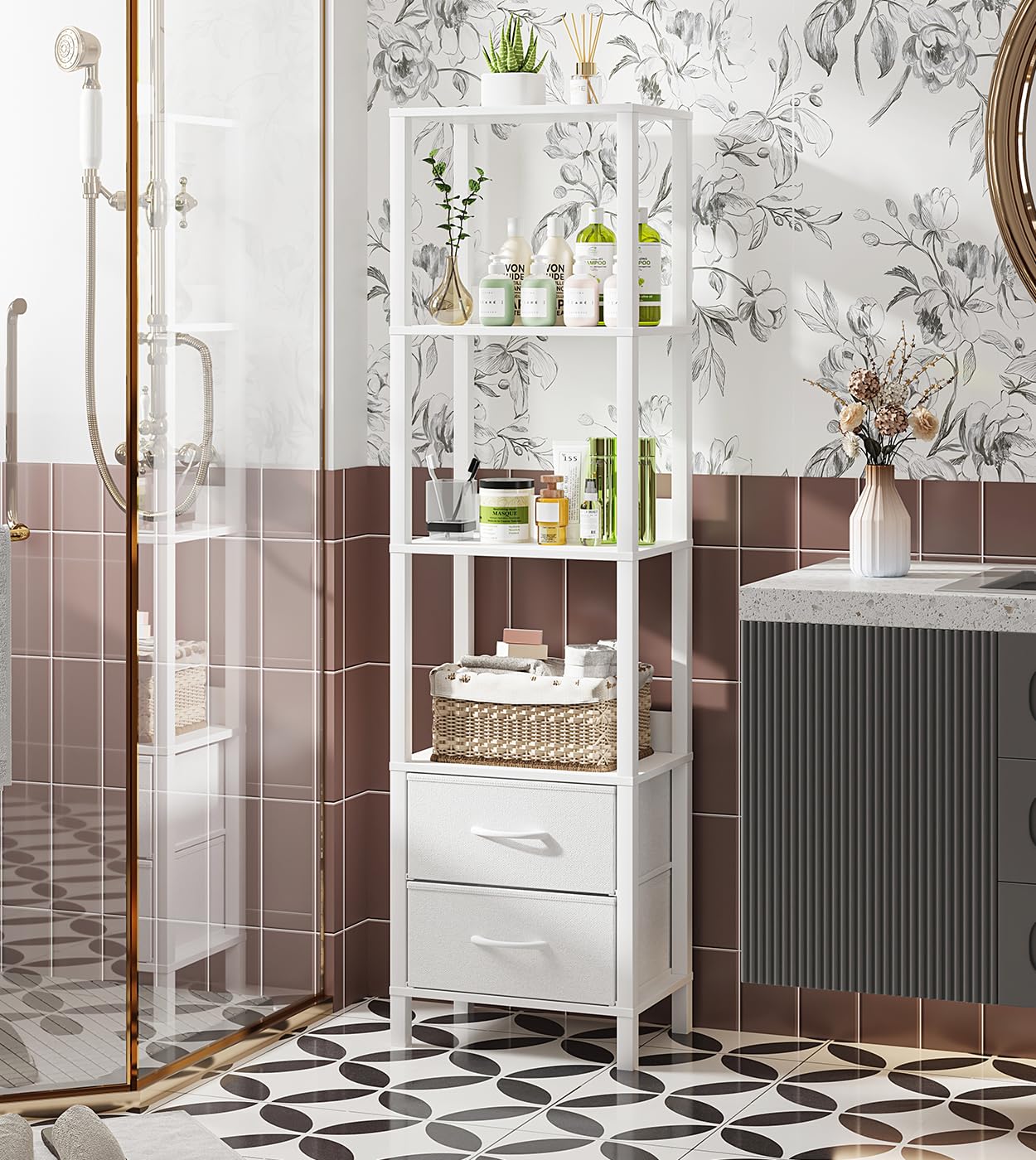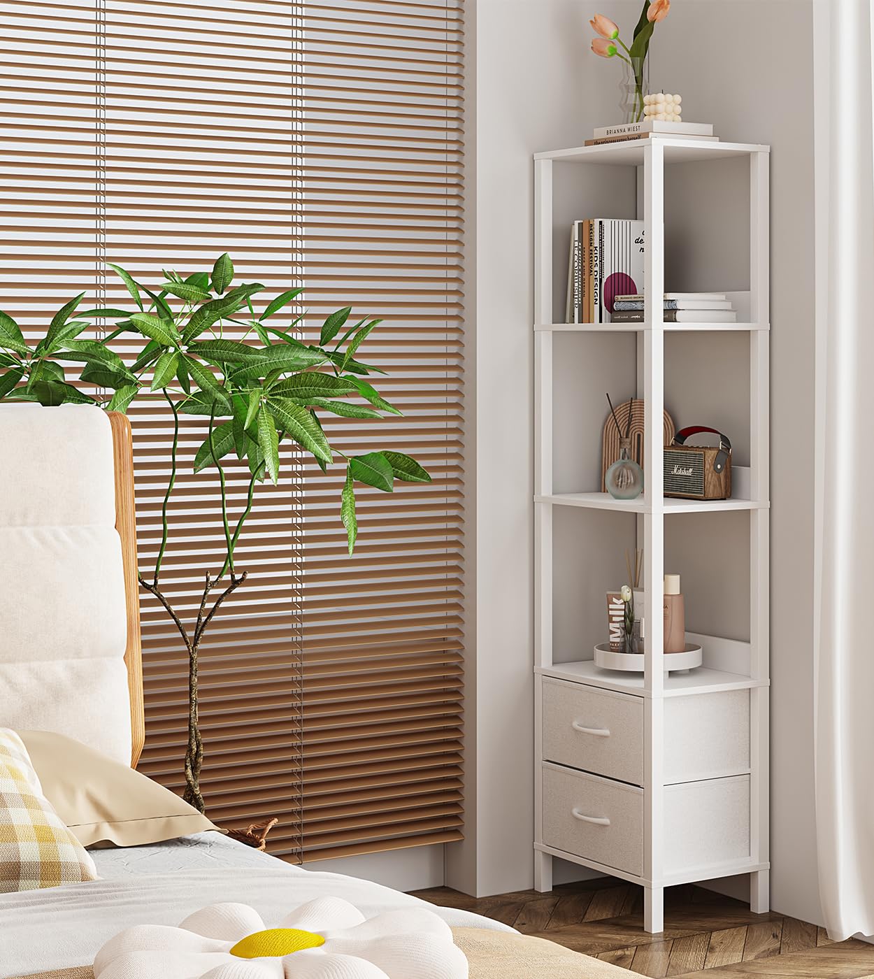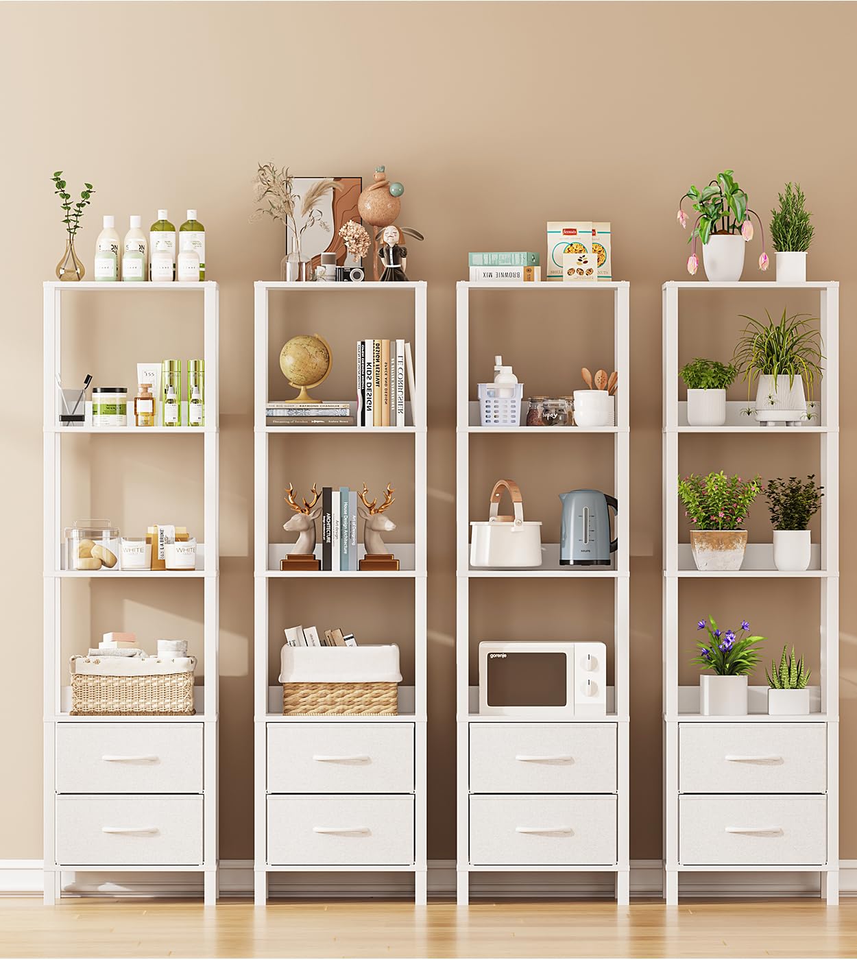 - [Durable Construction] This tall bookshelf with drawer is made from high-quality materials, each shelf is reinforced to support the weight of your books and other items. The non-woven fabric drawers are robust and resistant to wear and tear.