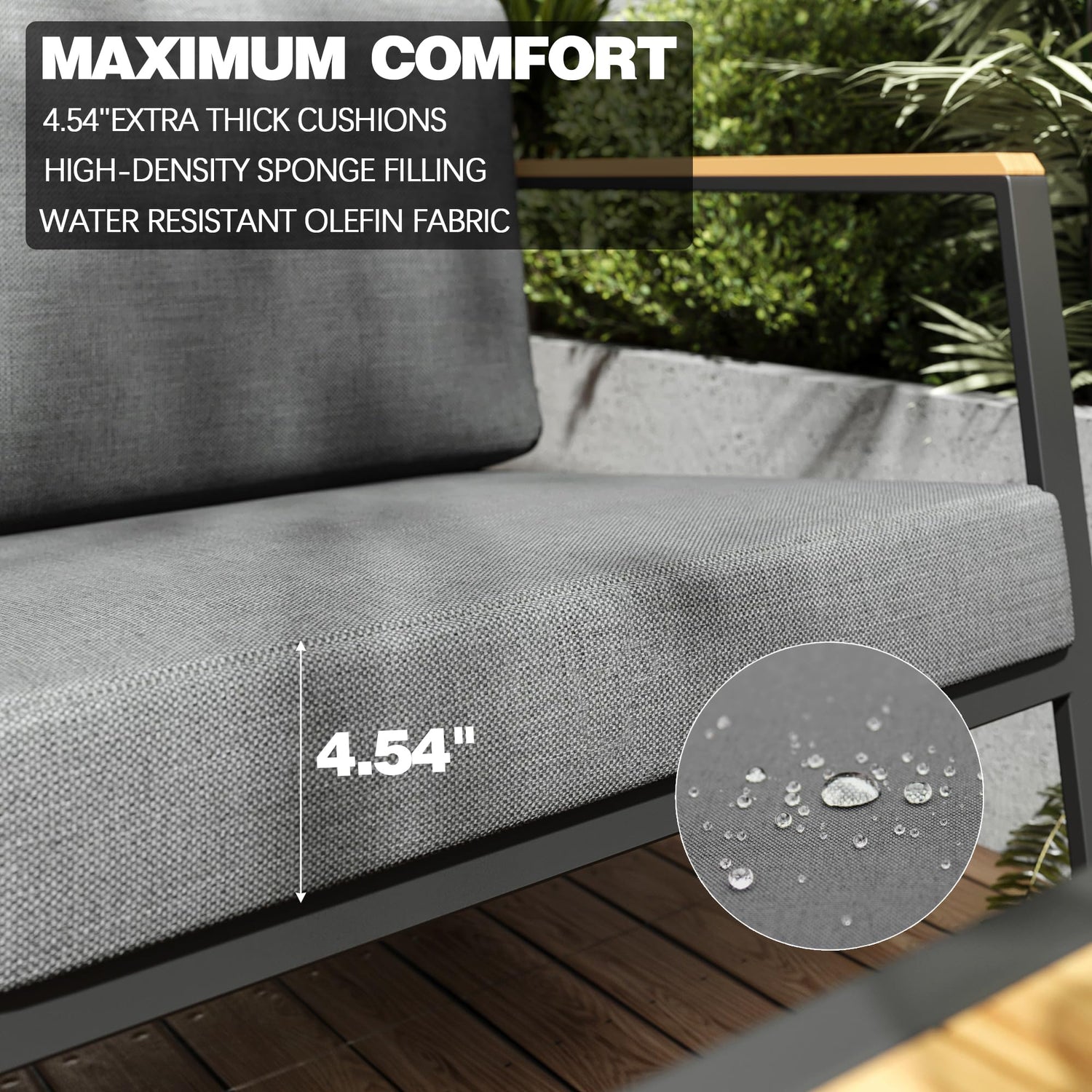 • 【Upgrade Cushions】The cushions of Vimstora patio conversation sets are made with upgraded olefin fabric and high-density sponge,which provides a 5" thick and lasting comfortable that helps relieve pressure.You'll find yourself immersed in comfort while lounging on them.