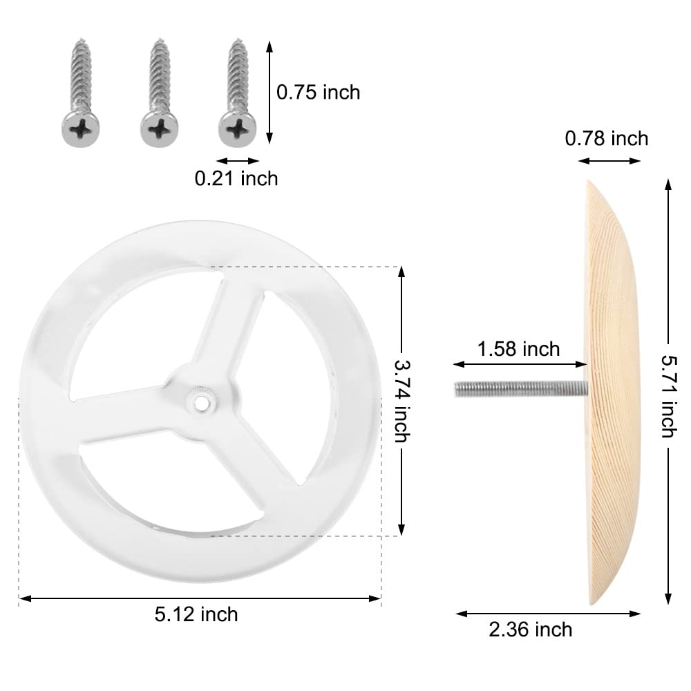 - Inner diameter 3.74 inches opening, outer diameter is 5.12 inches, the wooden diameter is 5.71 inches.