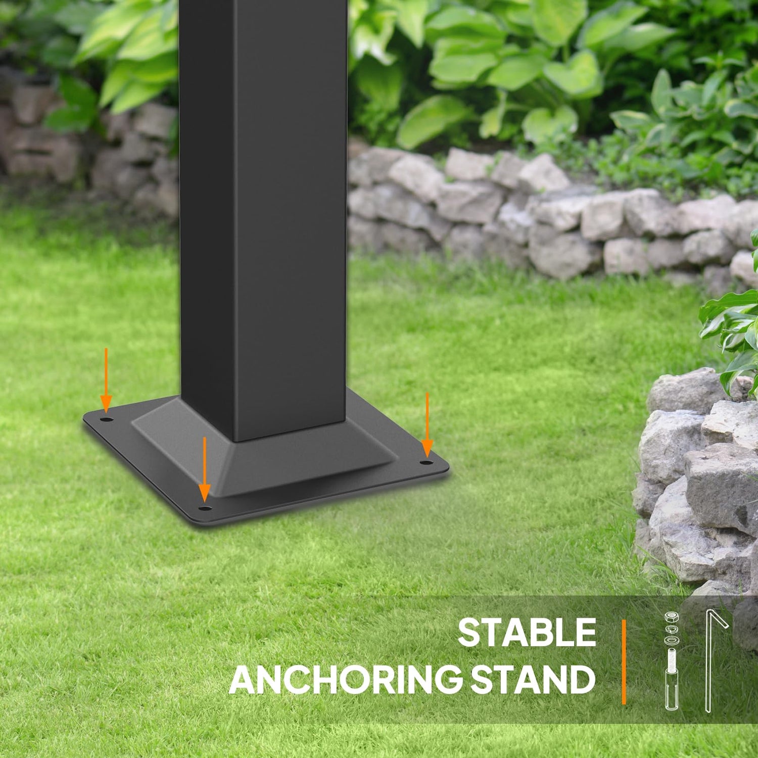 - Size: Overall:10’ x 10’ x 8’. Ground stakes can be used to mount metal pergola in your yard, concrete patio, wooden deck and more