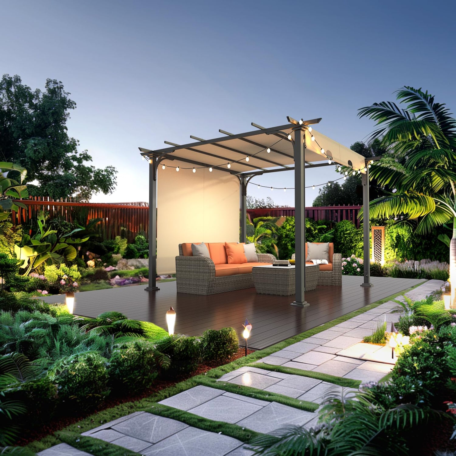 - [Sturdy Aluminum Frame]: Crafted from a powder-coated metal frame this retractable pergola canopy is both sturdy and rust-resistant