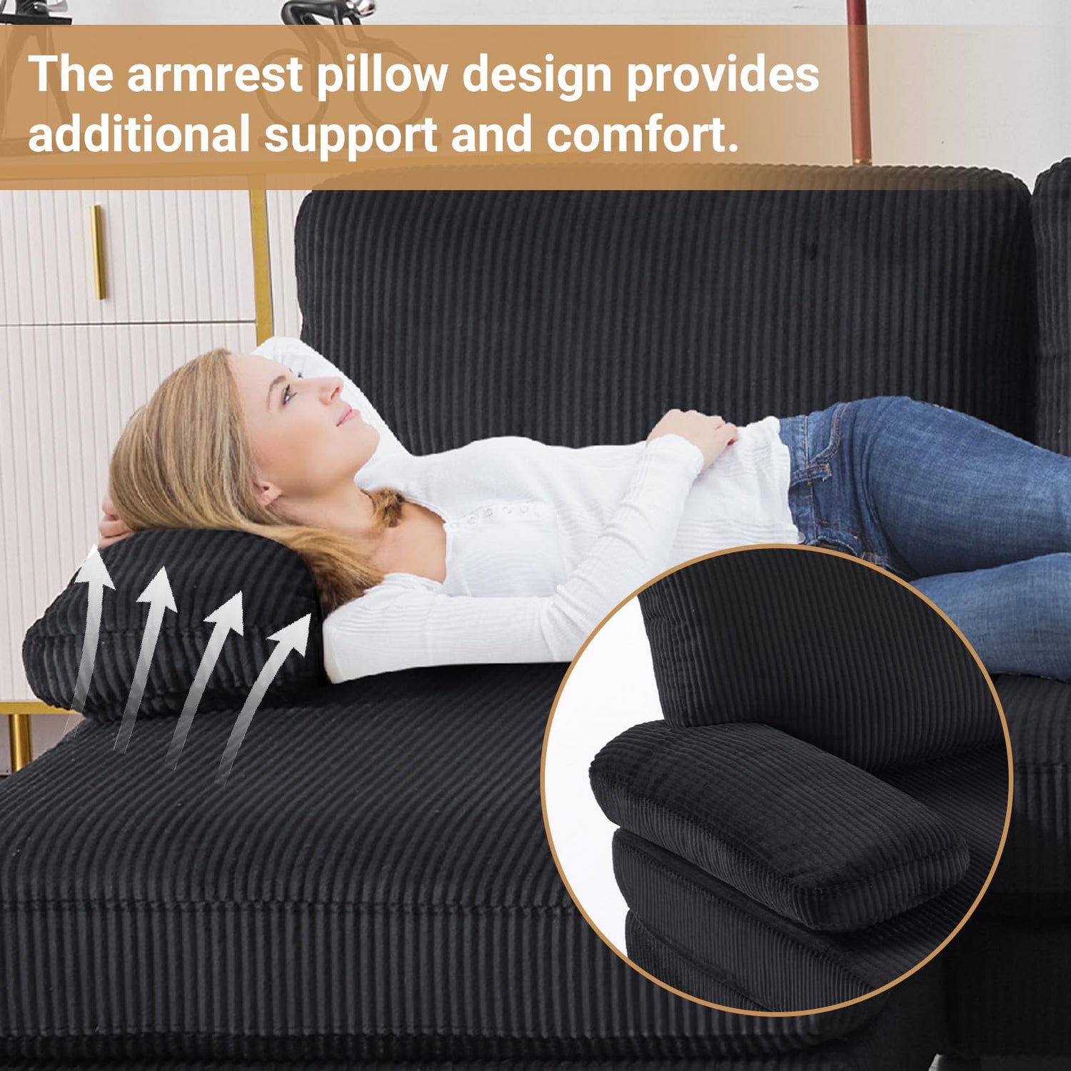 VINGLI 110" Sectional Couches for Living Room,U Shaped Couch with Double Chaise, 4-Seat Sofa Set with Corduroy Fabric for Home Furniture,Black