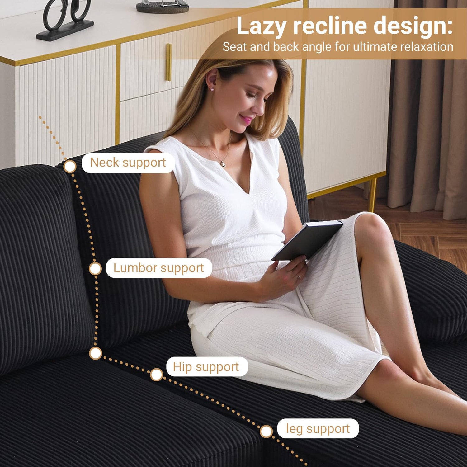 - Optimal Size : Perfectly proportioned for living room furniture sets, our white couch measures 111.4"W x 48.4"D x 33.3"H. This optimal size strikes a balance between spacious comfort and compact design, suitable for both smaller living spaces and cozy nooks in larger homes.