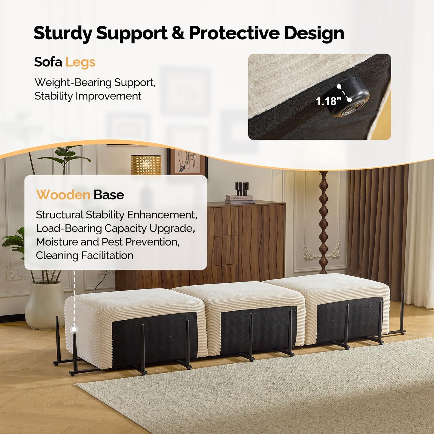 - 【Modular Flexibility】This sectional couch offers unparalleled flexibility. Individual modules rearrange effortlessly to fit any living room layout—from open spaces to cozy corners. Each module features a sturdy wooden base that prevents sliding, keeping the couch stable whether configured for gatherings or transformed into a bed-like setup. Maximize your space with a design that combines adaptability and reliable support.