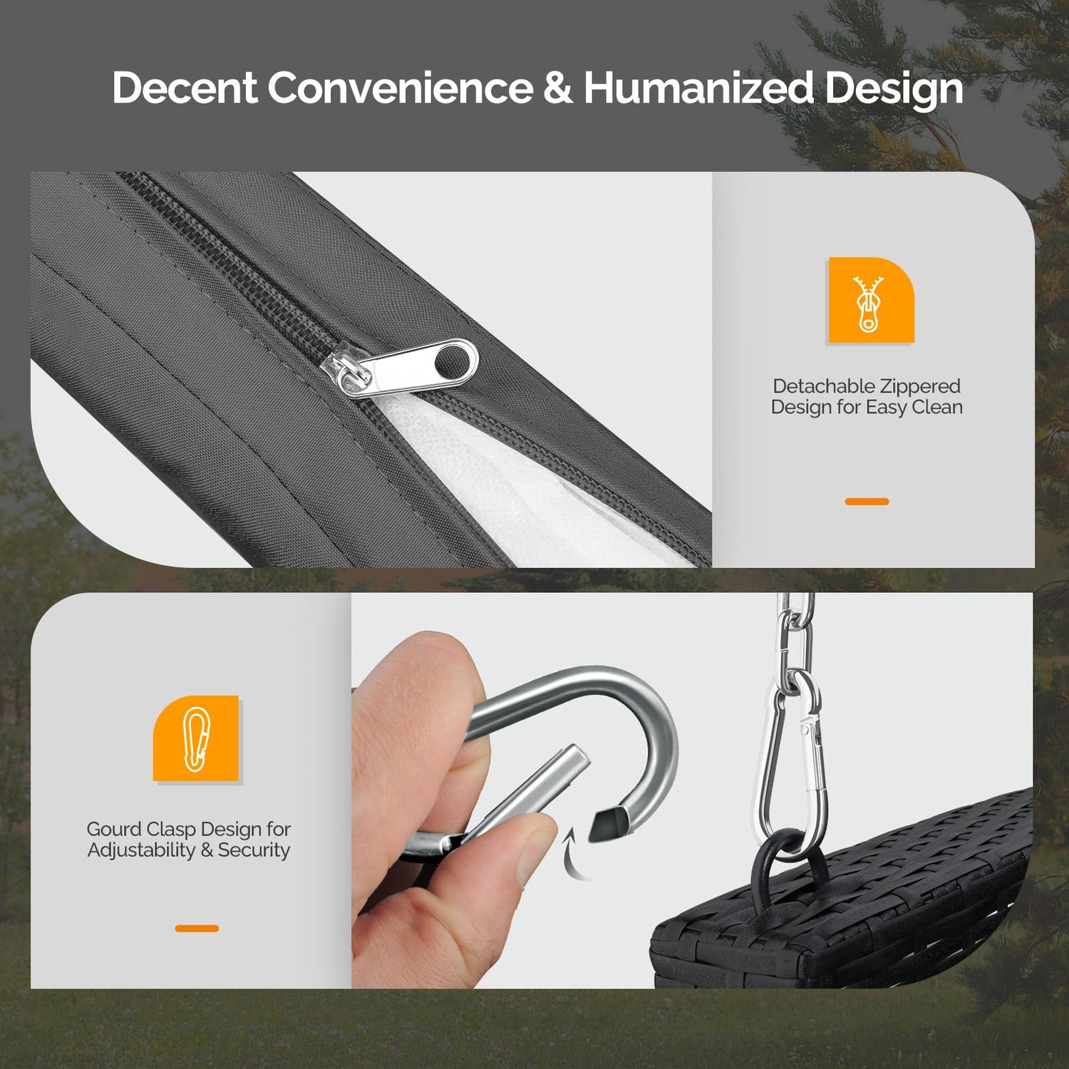- 『Cushions Included』Our patio swing have extra soft sponge cushions included in the box. What's more, the zippered design will make it easy to clean