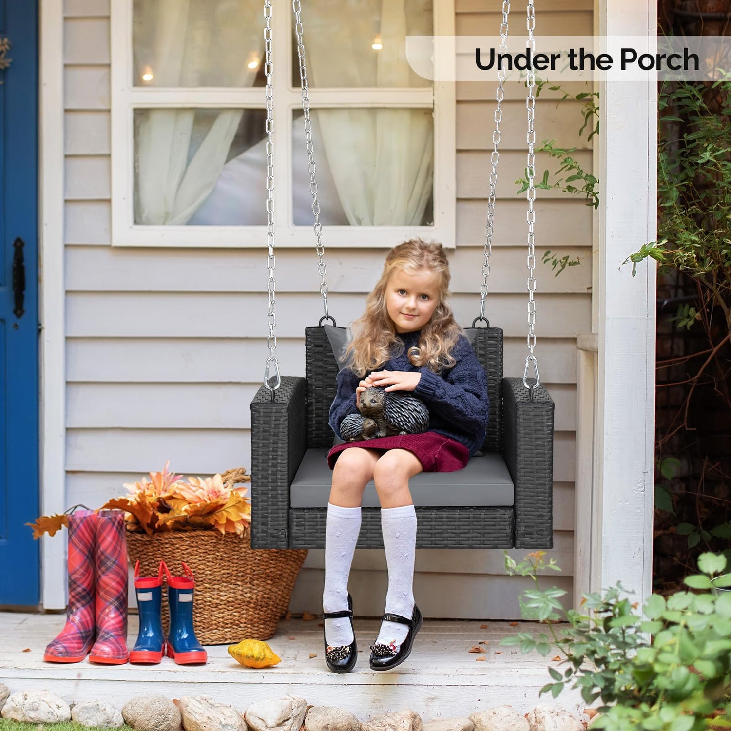 - 『All Weather PE Material』With the decent PE rattan, our front porch swing will perform perfectly in any weather conditions. Whether it's sunny or rainy, the quality will never let you down