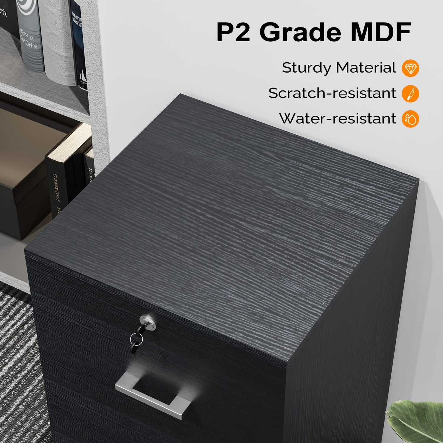- 【Under Desk File Cabinet】VINGLI wood file cabinet is made of P2 Grade MDF, which is scratch-resistant and water-resistant. The class black look blends well with any types of home office decors. Great to set it under desk to be your helper