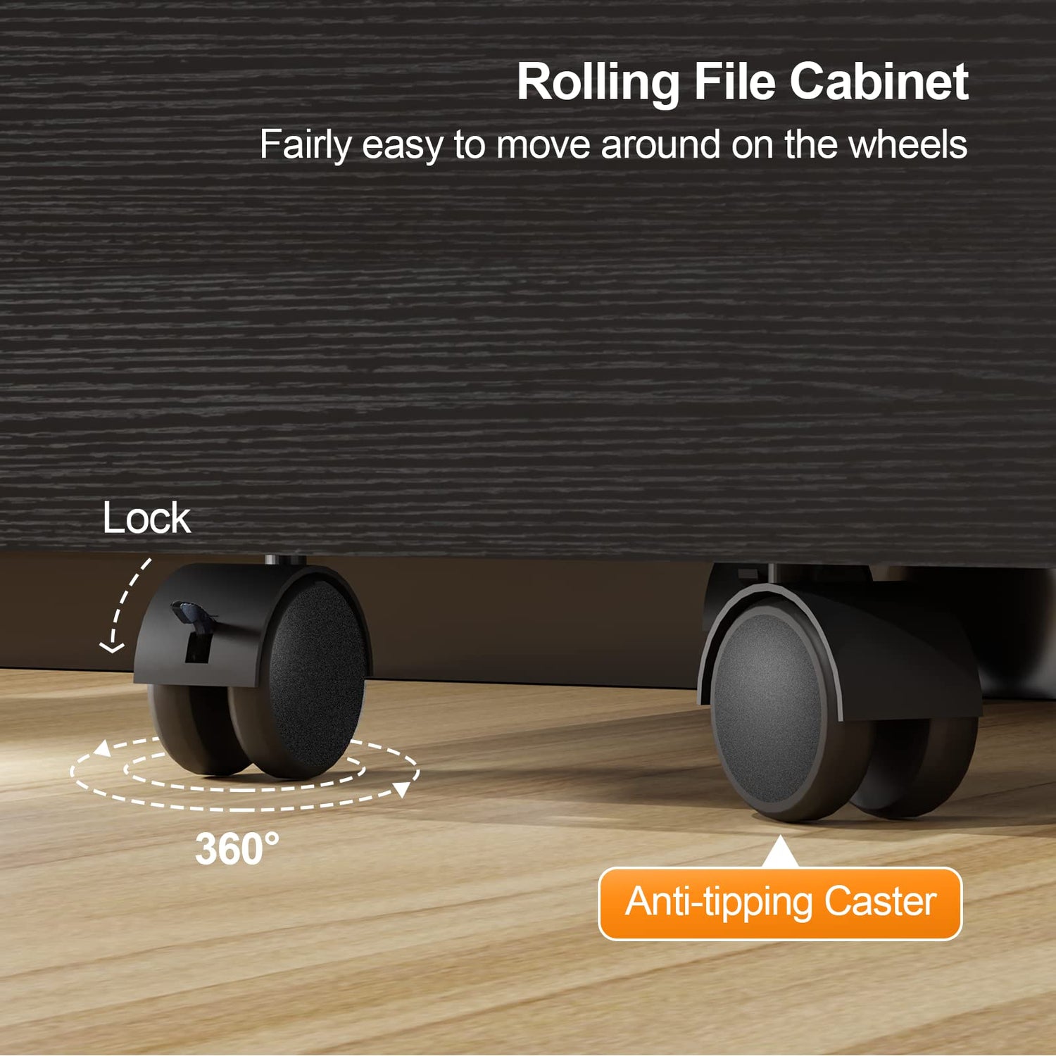 - 【STABLE & FLEXIBLE】Mobile file cabinet has five wheels, four of them have locks allowing you to move the drawers to anywhere you like. Best of all, the fifth wheel in the center adds stability to the rolling file cabinet, so you no longer have to worry about the drawer tipping over when you open it