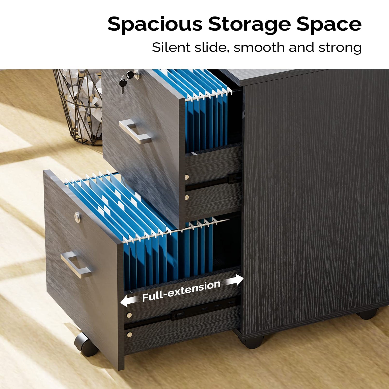 VINGLI 2-Drawer Small Rolling File Cabinet with Lock, Wood Filing Cabinet for Hanging Letter Size Filings with Tabs, Mobile Under Desk File Cabinet for Home Office, Classic Black, 27.2" H
