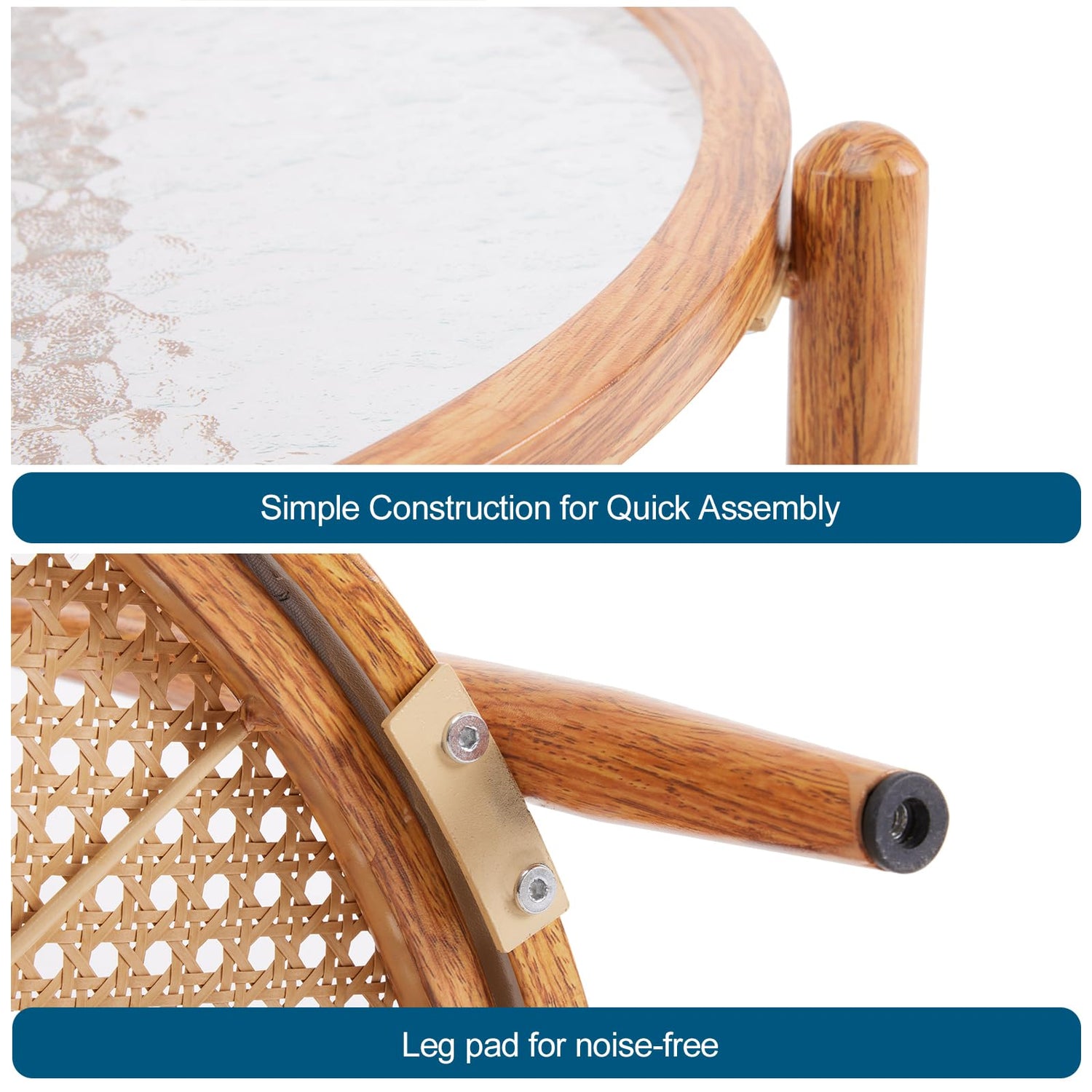 - 【Innovative design】-this small round coffee table has a fusion of water ripple glass and imitation rattan elements creates an elegant and fashionable appearance. Let you feel the freshness of nature in summer, and bring the warm texture of sunshine in winter.