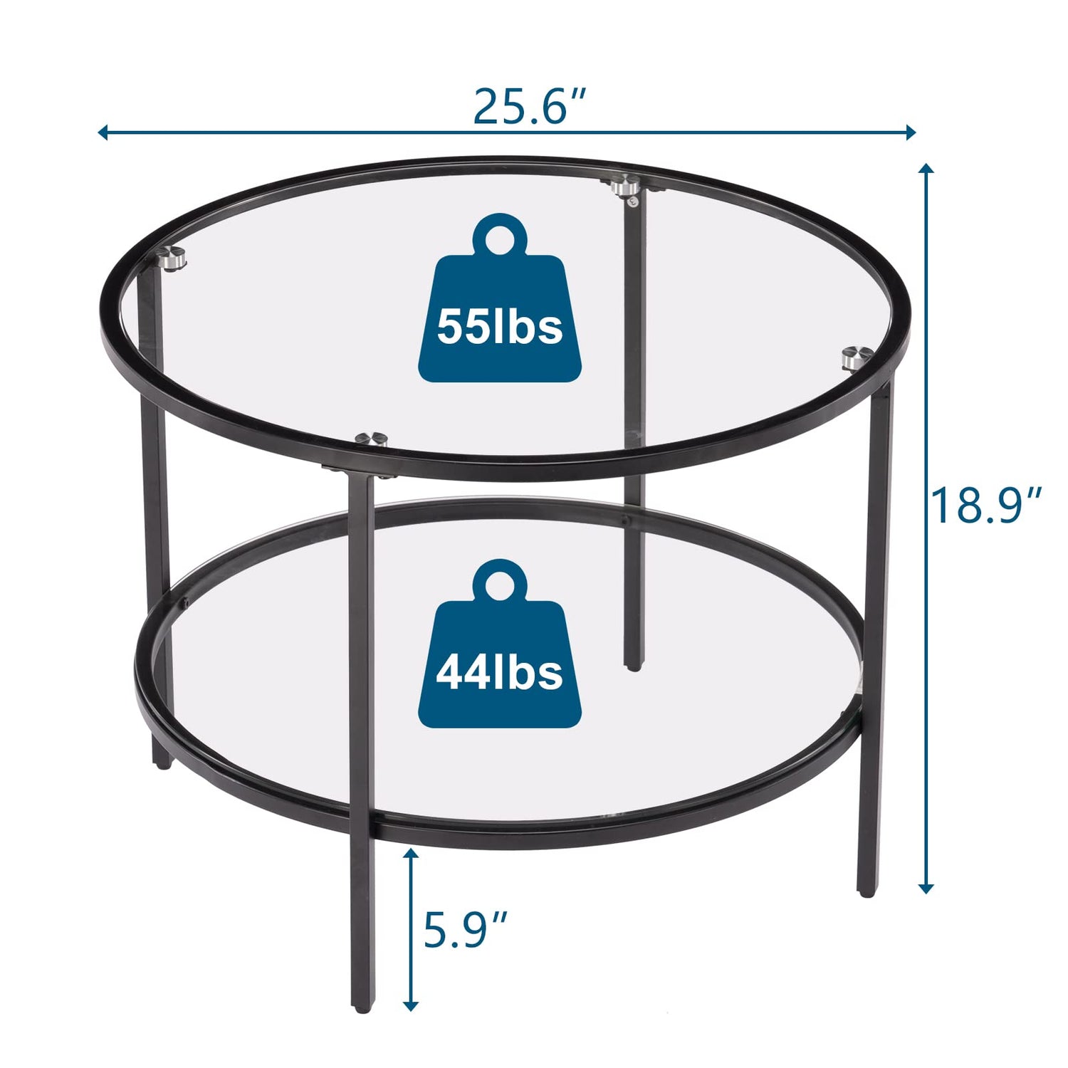 - 【2-shelves Design】Have you been looking for a coffee table in glass with both top and bottom tier for a long time? Our round glass coffee table offers you the best solution for your glass accent furnitures. It comes with two tiers in glass which would maxmiumly satisfy your storage demand as well as wouldn't take up too much space.